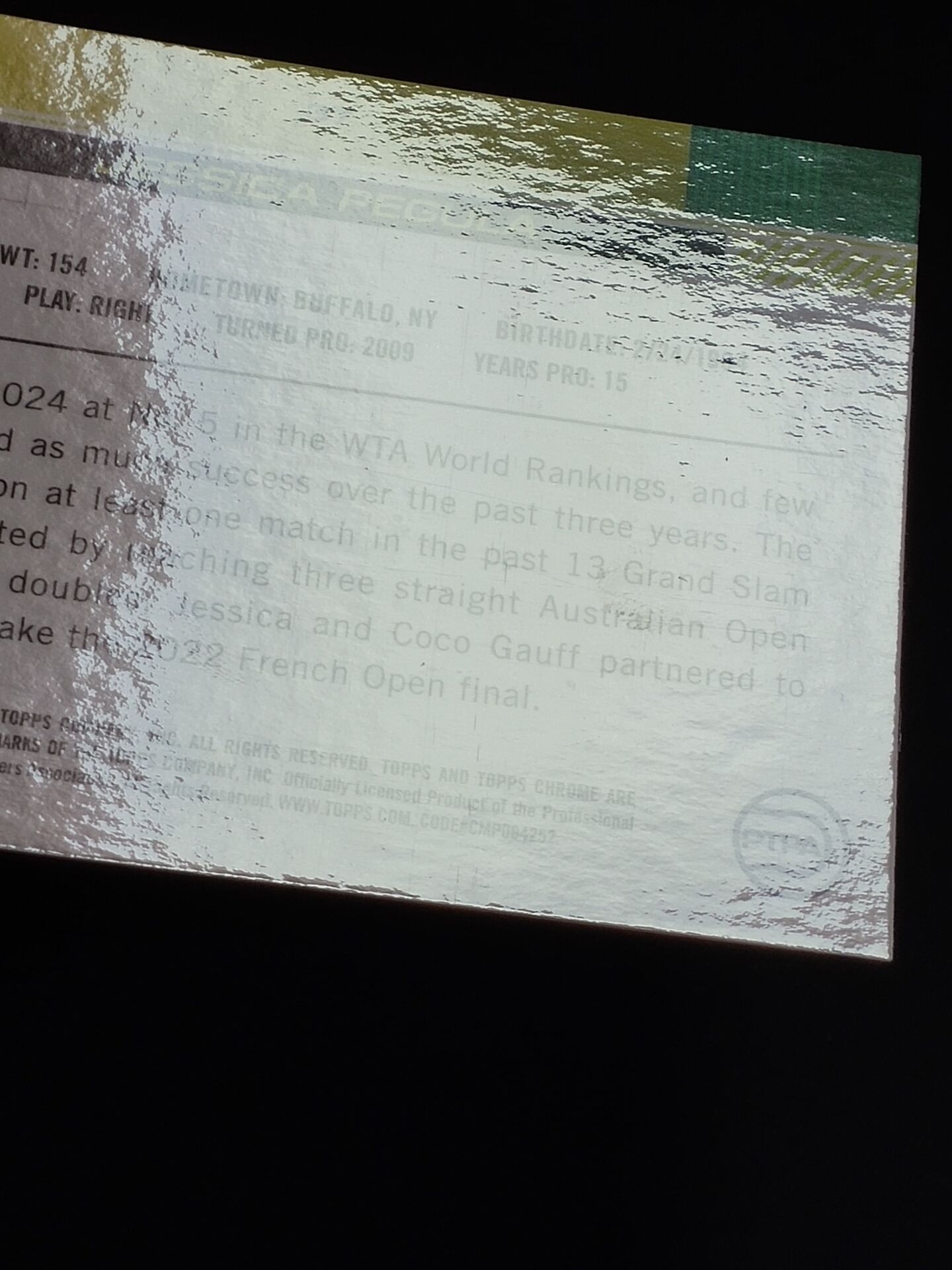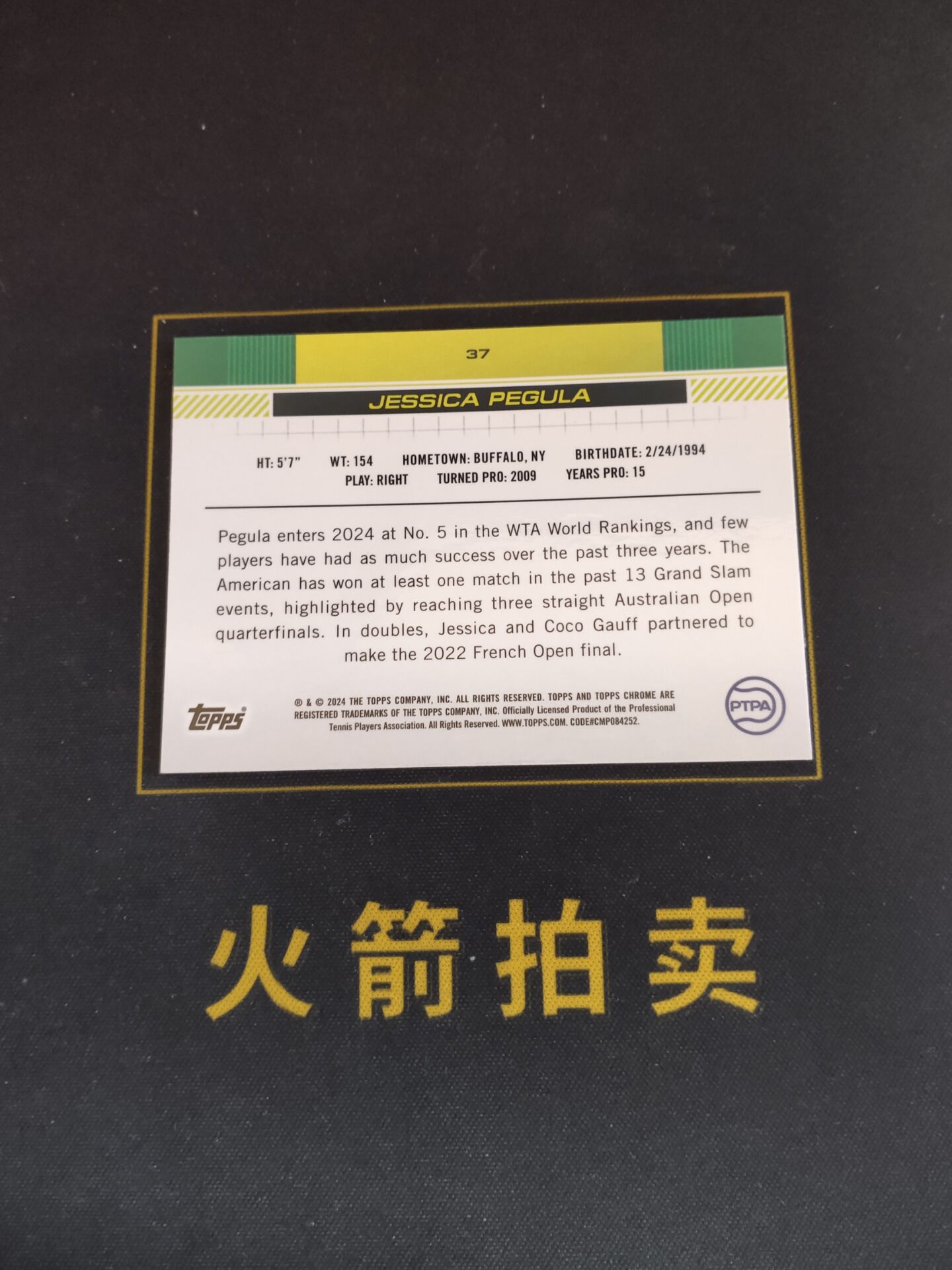 【火箭拍卖 截标预付82%】2024 topps chrome Jessica Pegula 网球 杰西卡 佩古拉 1ST 紫折 折射 388/499编 专收必备 瑕疵看图「MTreal100」1203Q03様緲