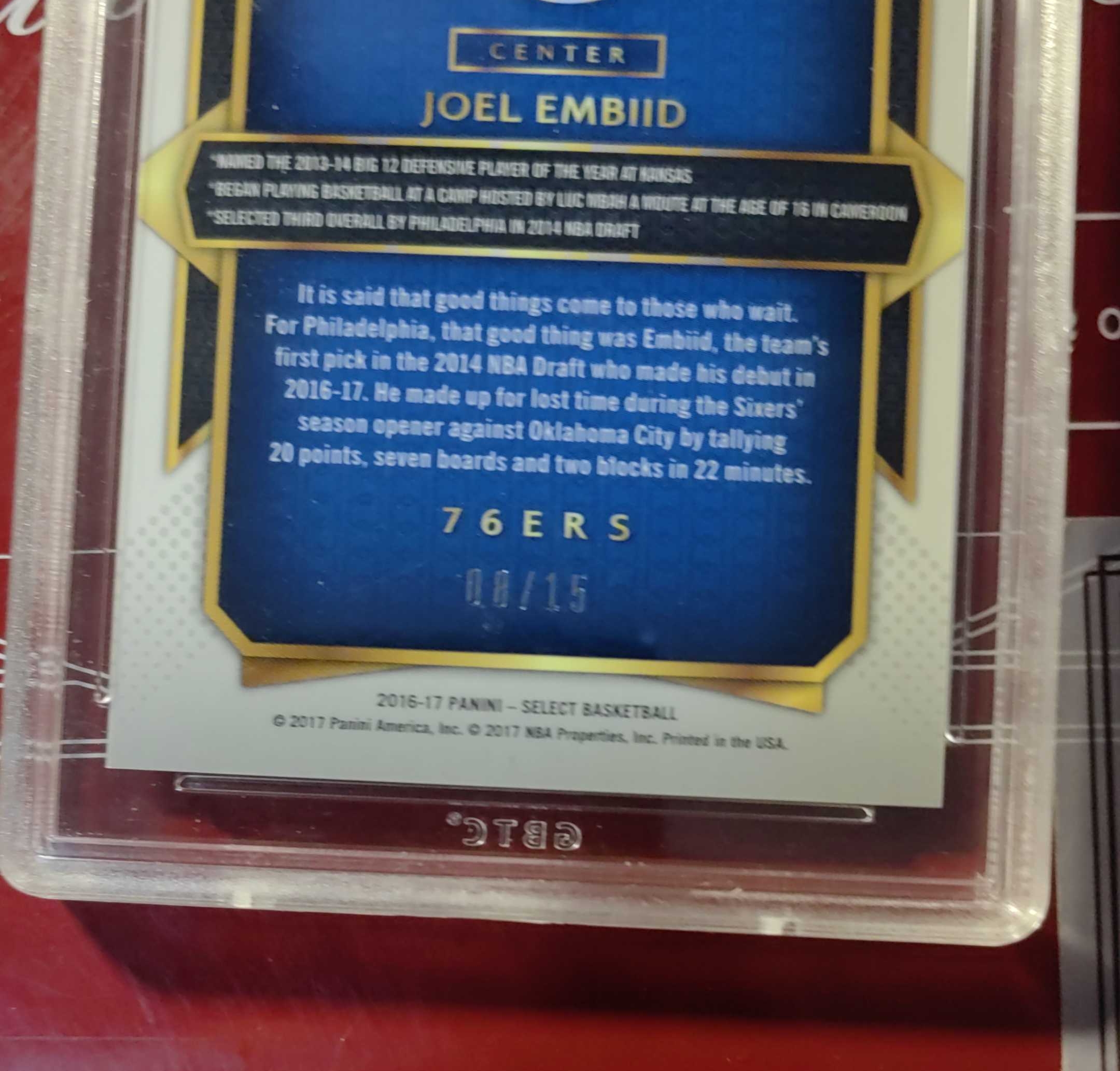 2016 Panini Select Joel Embiid 恩比德 费城76人队 粉折射 08/15编 马克西 埃奇库姆队友 艾佛森 MVP总冠军 评级凑套必备 老卡难得
