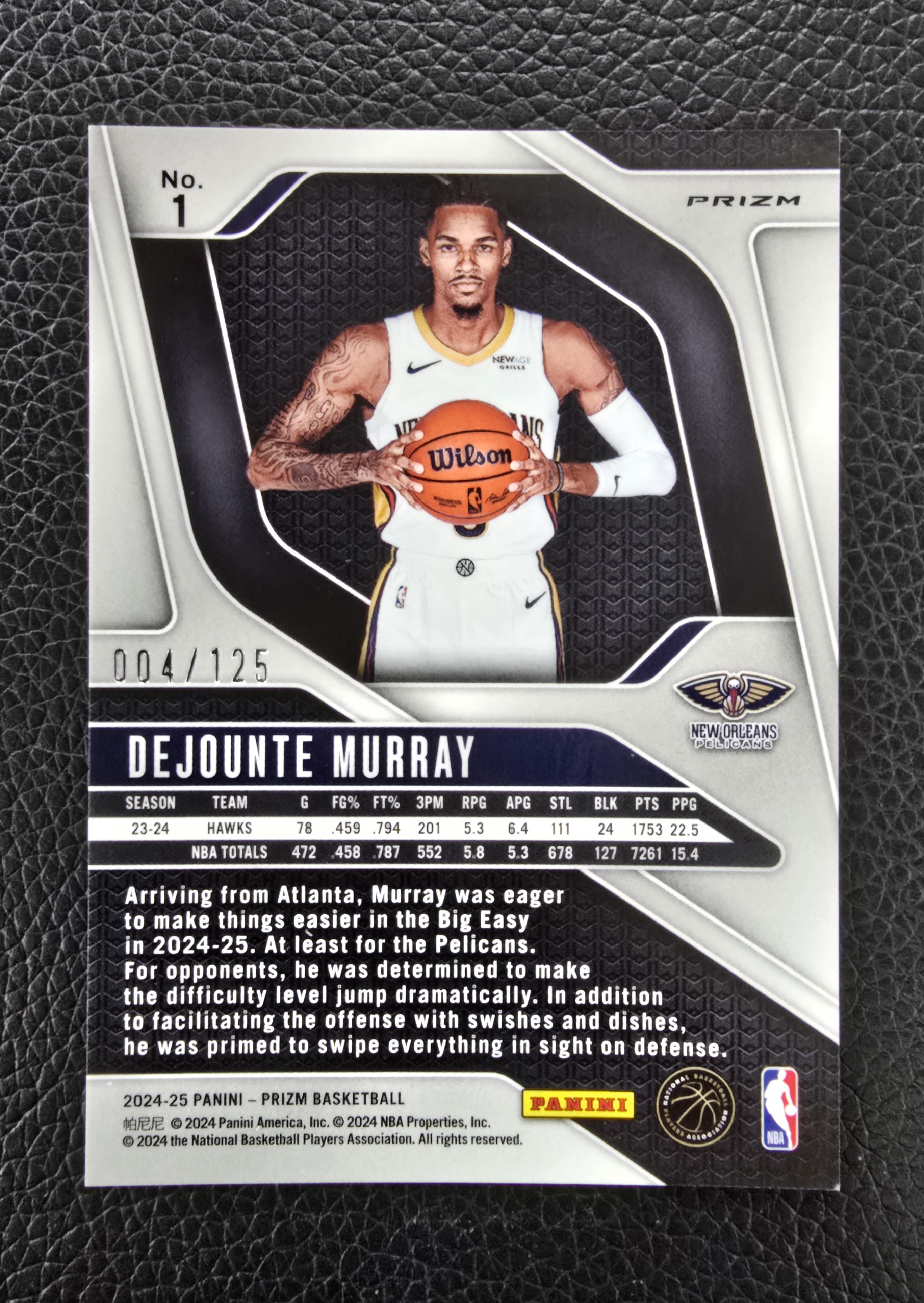 2024-25 Panini Prizm Dejounte Murray 【小草卡店】鹈鹕全明星 德章泰穆雷 /125编 蓝波纹折 防守专家 马刺出品 小茉莉 适合凑套收藏