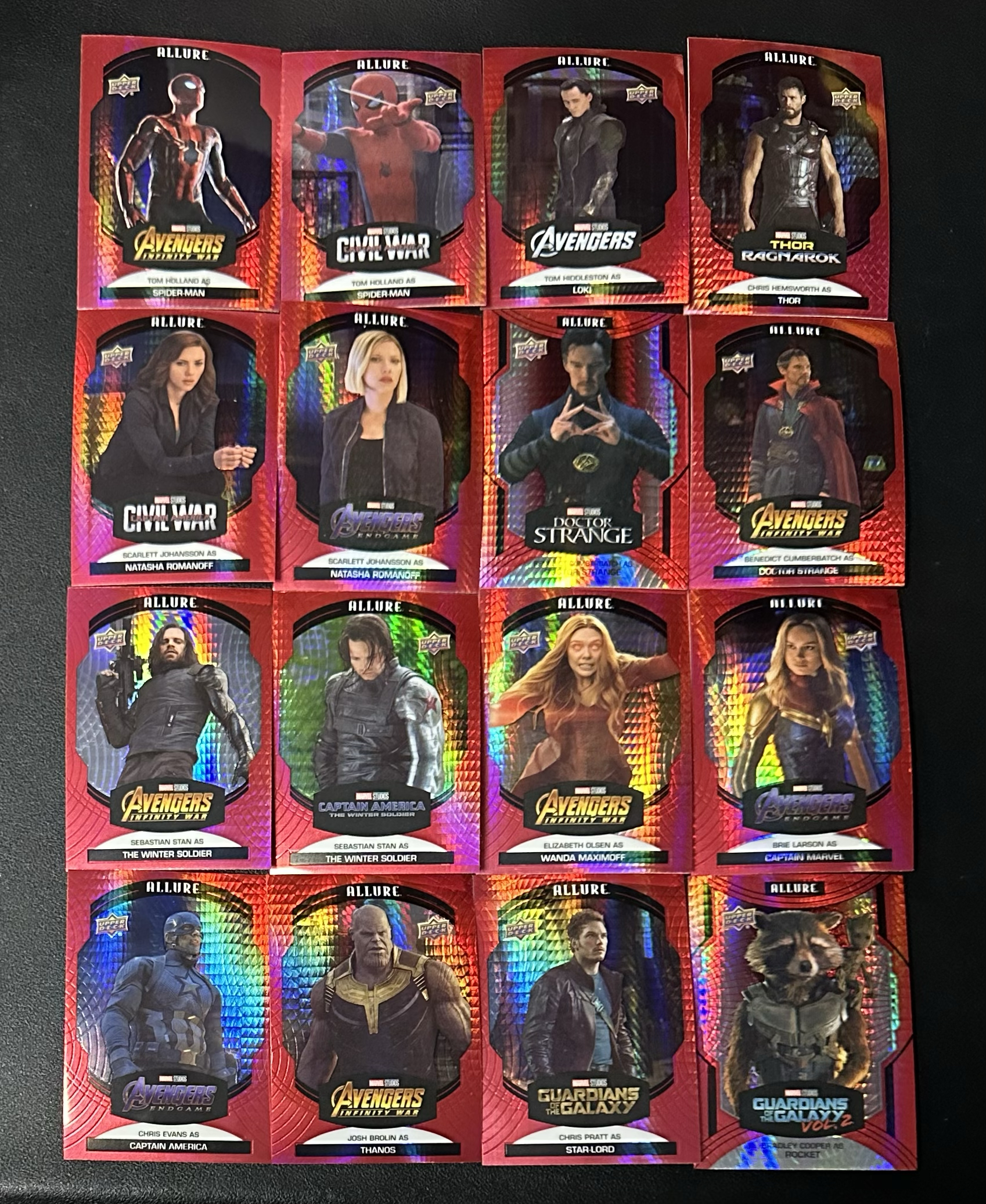 2022 Upper Deck Marvel Allure UD 漫威诱惑 小黑钻 红平行 红折 16张不重复 蜘蛛侠 钢铁侠 洛基 雷神 绯红 奇异博士 冬兵等 卡有弯曲介意勿拍
