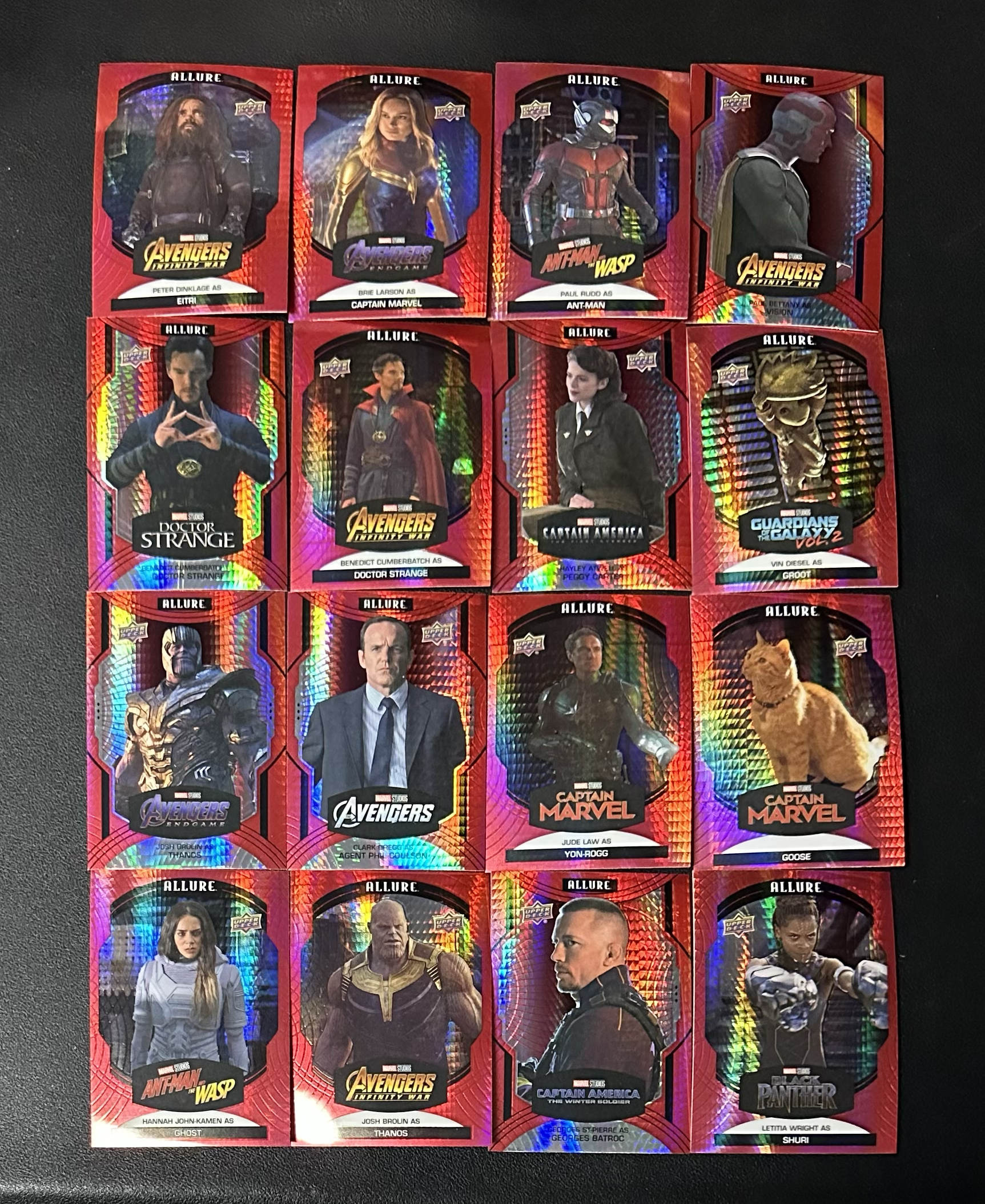 2022 Upper Deck Marvel Allure UD 漫威诱惑 小黑钻 红平行 红折 16张不重复 蚁人 惊奇队长 幻视 奇异博士 灭霸 等 卡有弯曲介意勿拍