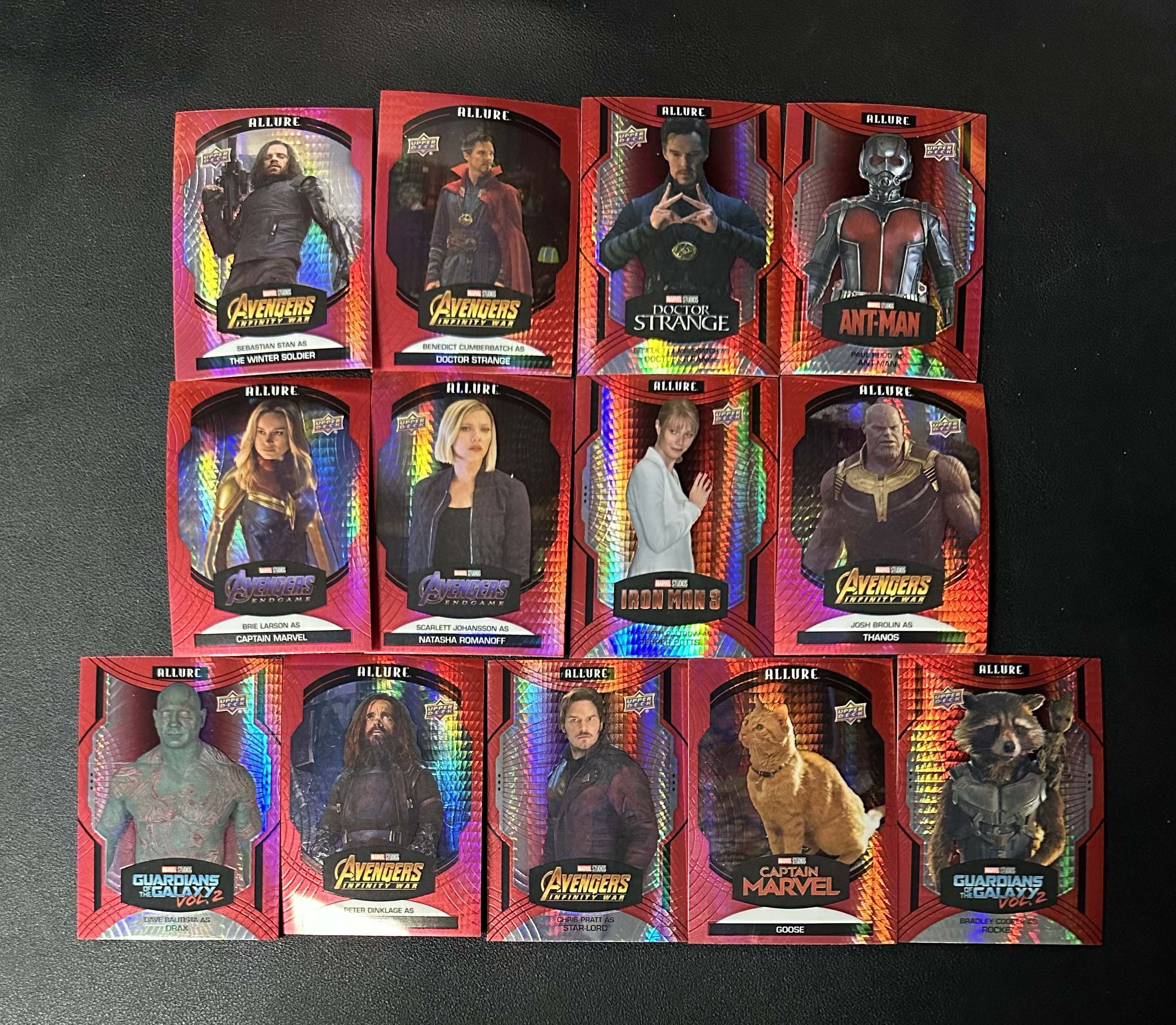 2022 Upper Deck Marvel Allure UD 漫威诱惑 小黑钻 红平行 红折 13张不重复 冬兵 寡姐 蚁人 惊奇队长 奇异博士 灭霸 等 卡有弯曲介意勿拍