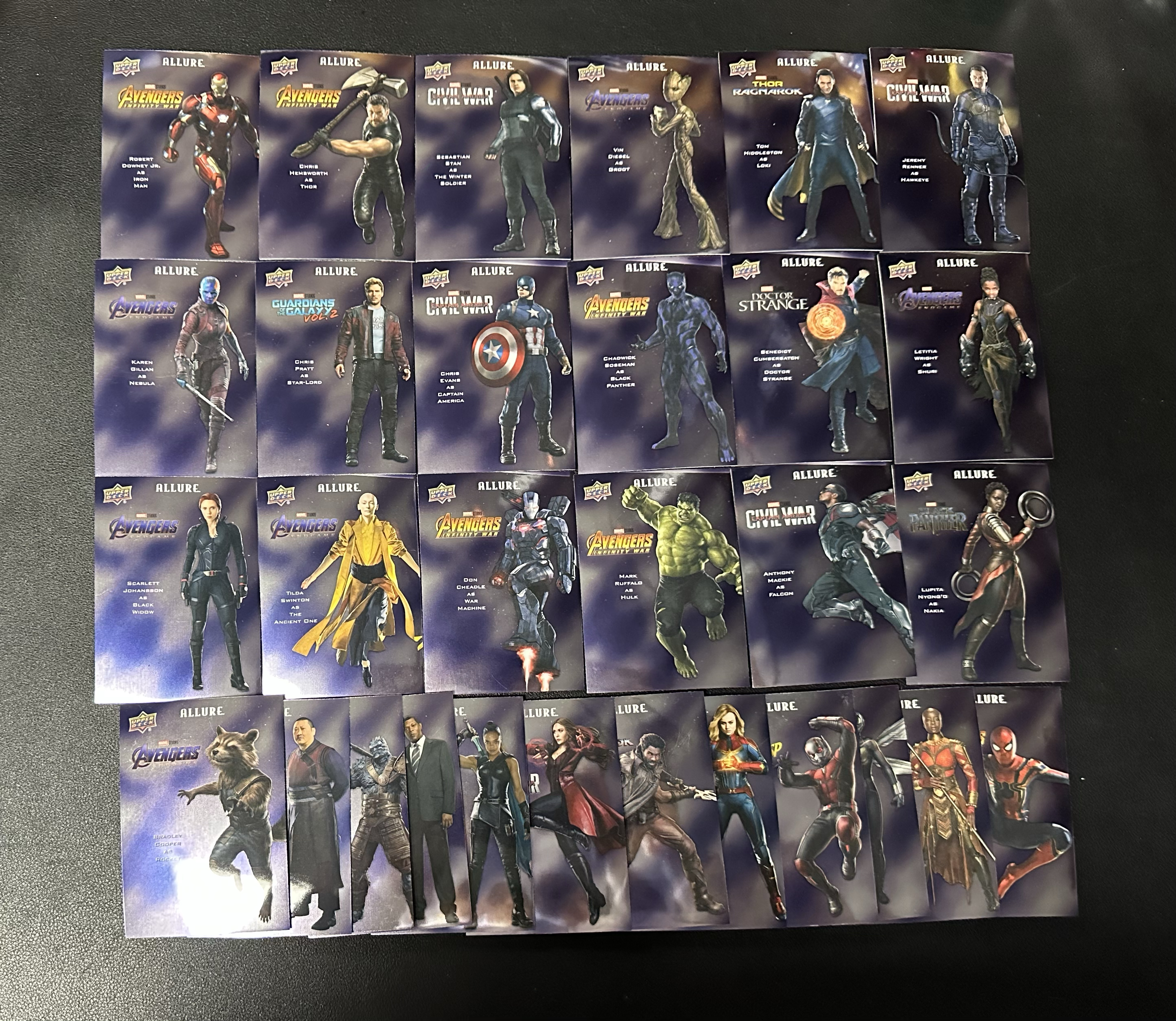 2022 Upper Deck Marvel Allure 漫威 小黑钻 诱惑系列 人物海报特卡 30张不重复齐套 漫威小黑钻钢铁侠 雷神 蜘蛛侠 洛基 缺 4 7 13 31