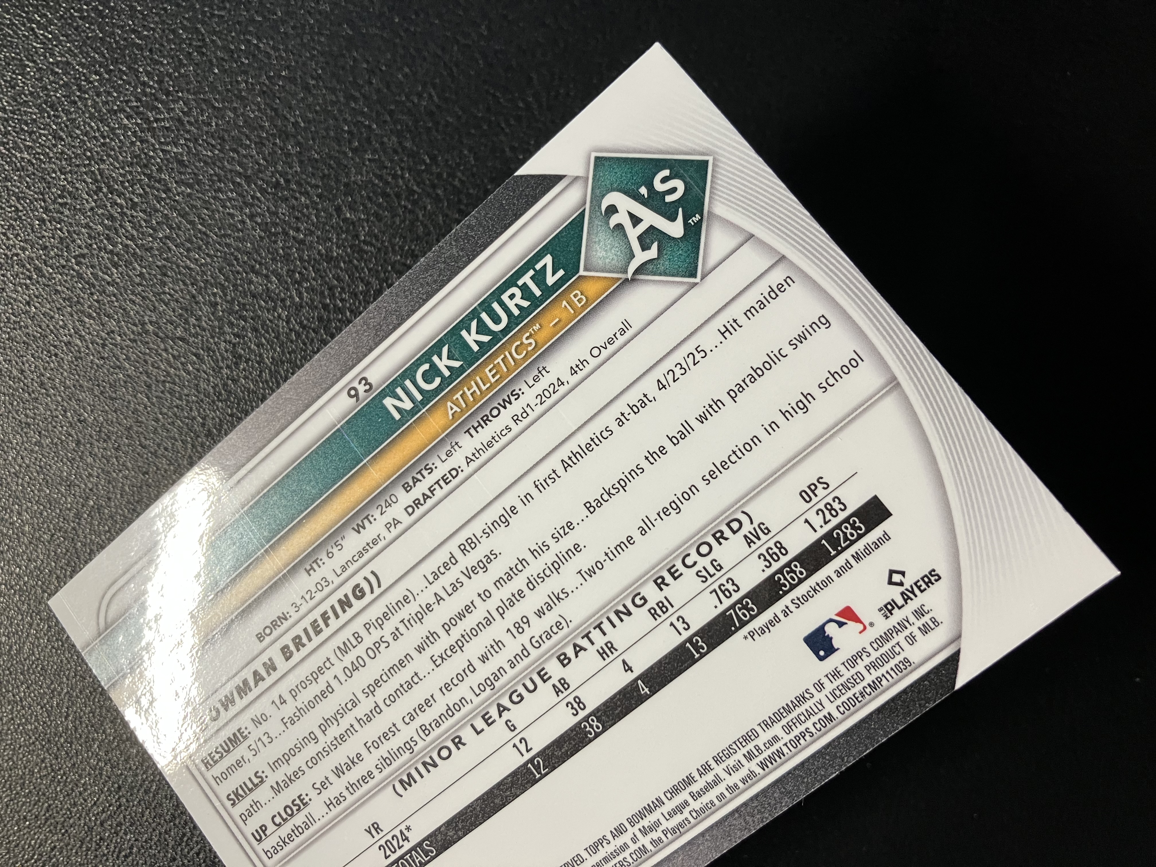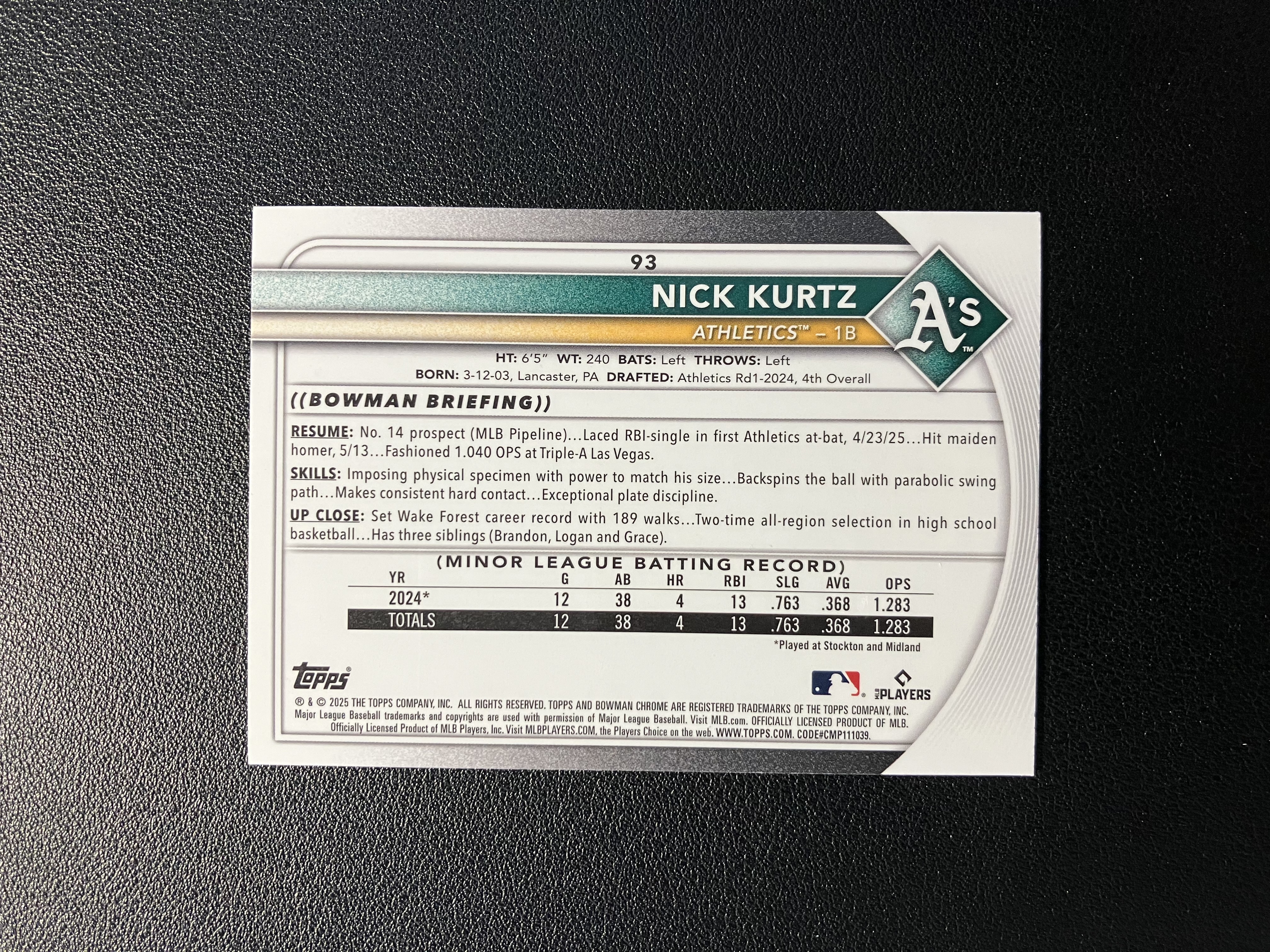2025 Topps Bowman Chrome Lot RC 尼克-库尔茨 Mojo折 RC新秀 奥克兰运动家 MLB 未来之星 卡品如图 B227