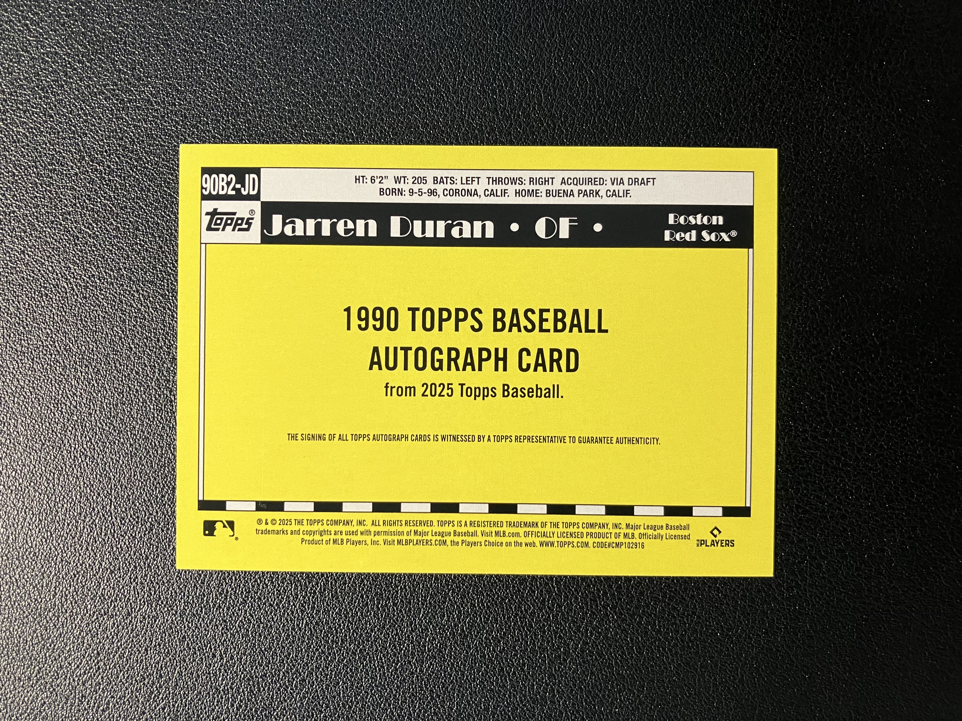 2025 Topps Update Series Jarren Duran 贾伦-杜兰 1990复古特卡签字 卡签 35周年 波士顿红袜 外野手 卡品如图 B227