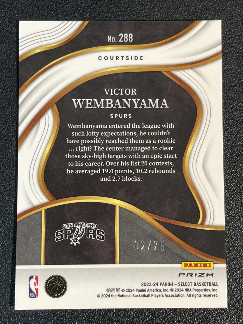 2023-24 Panini Select Victor Wembanyama RC 601 维克托 文班亚马 马刺 新秀 状元 折射 蓝折 蓝波纹折 75编 三级 3级 卡品如图 尖叫代拍 白白