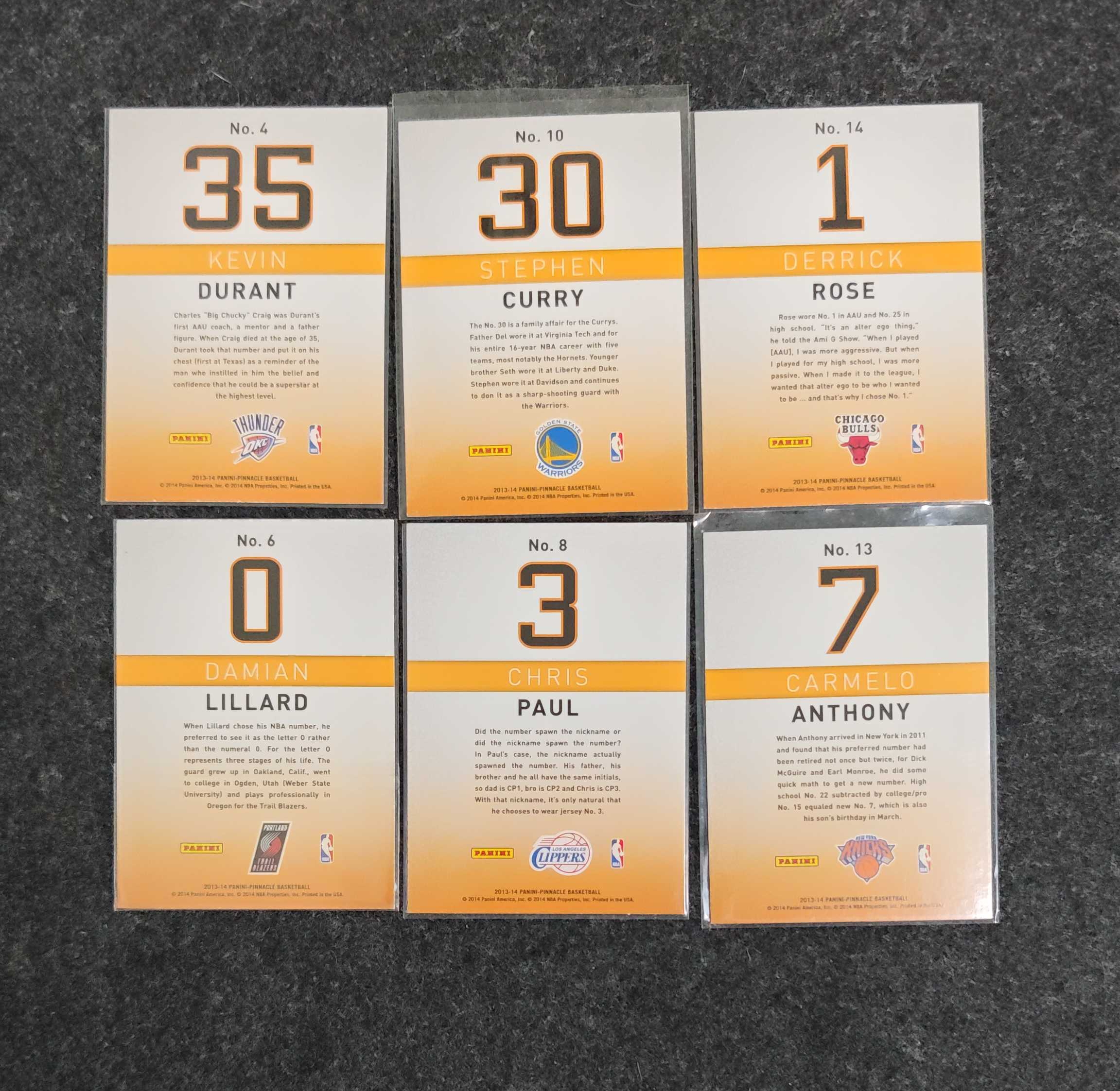 2013-14 Panini Pinnacle Stephen Curry 巅峰系列 库里 杜兰特 罗斯 利拉德 保罗 安东尼 背号特卡 【梓文拍卖】