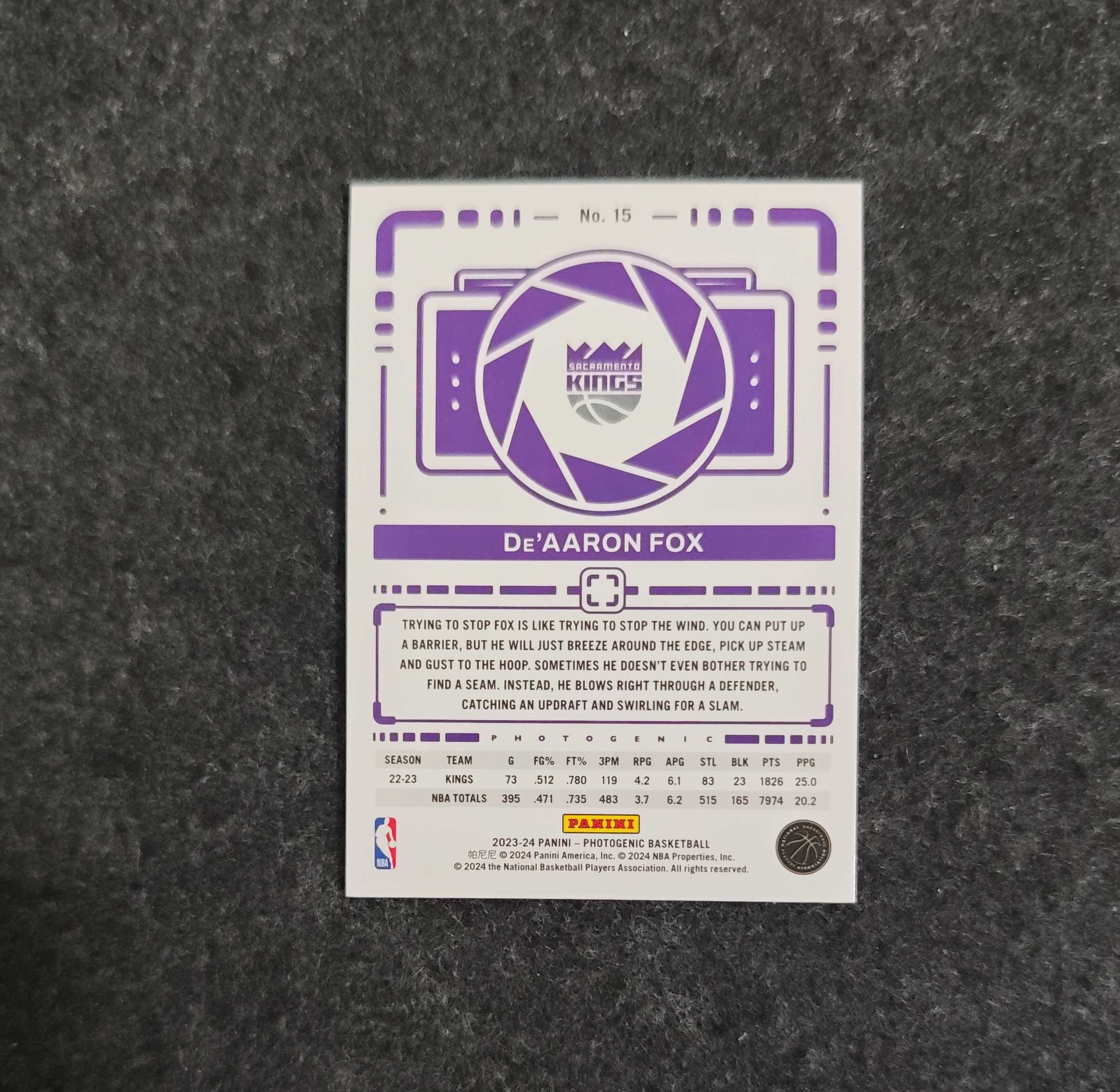 2023-24 Panini PaniniPhotoGenicNBA De'Aaron Fox 上镜系列 达龙 福克斯 37/75编 带编 碎冰折 折射 【梓文拍卖】