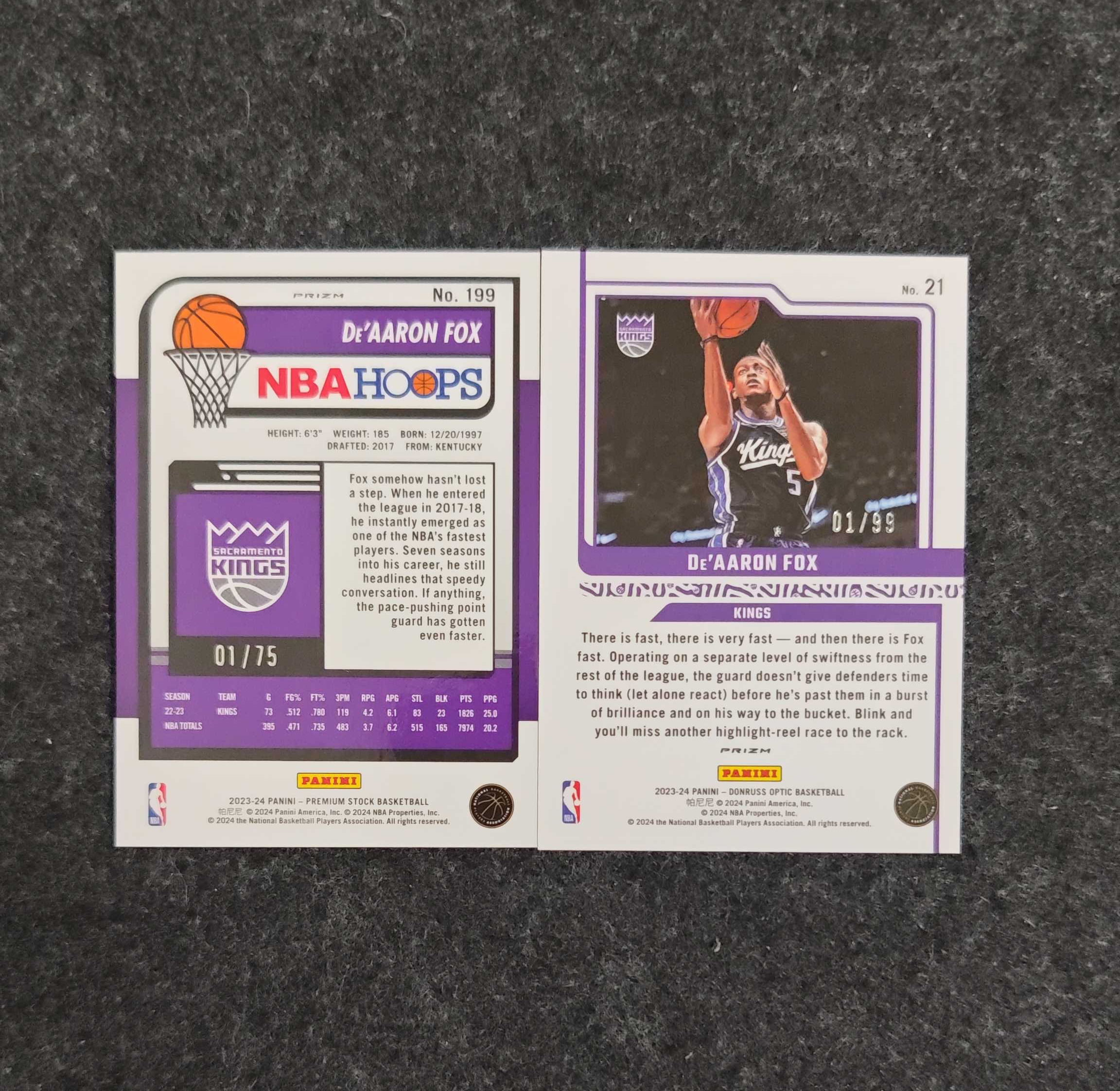2023-24 Panini Optic De'Aaron Fox hoops系列 达龙 福克斯 01/75编 带编 首编 optic系列 圈圈折 01/99编 两张首编 打包 【梓文拍卖】