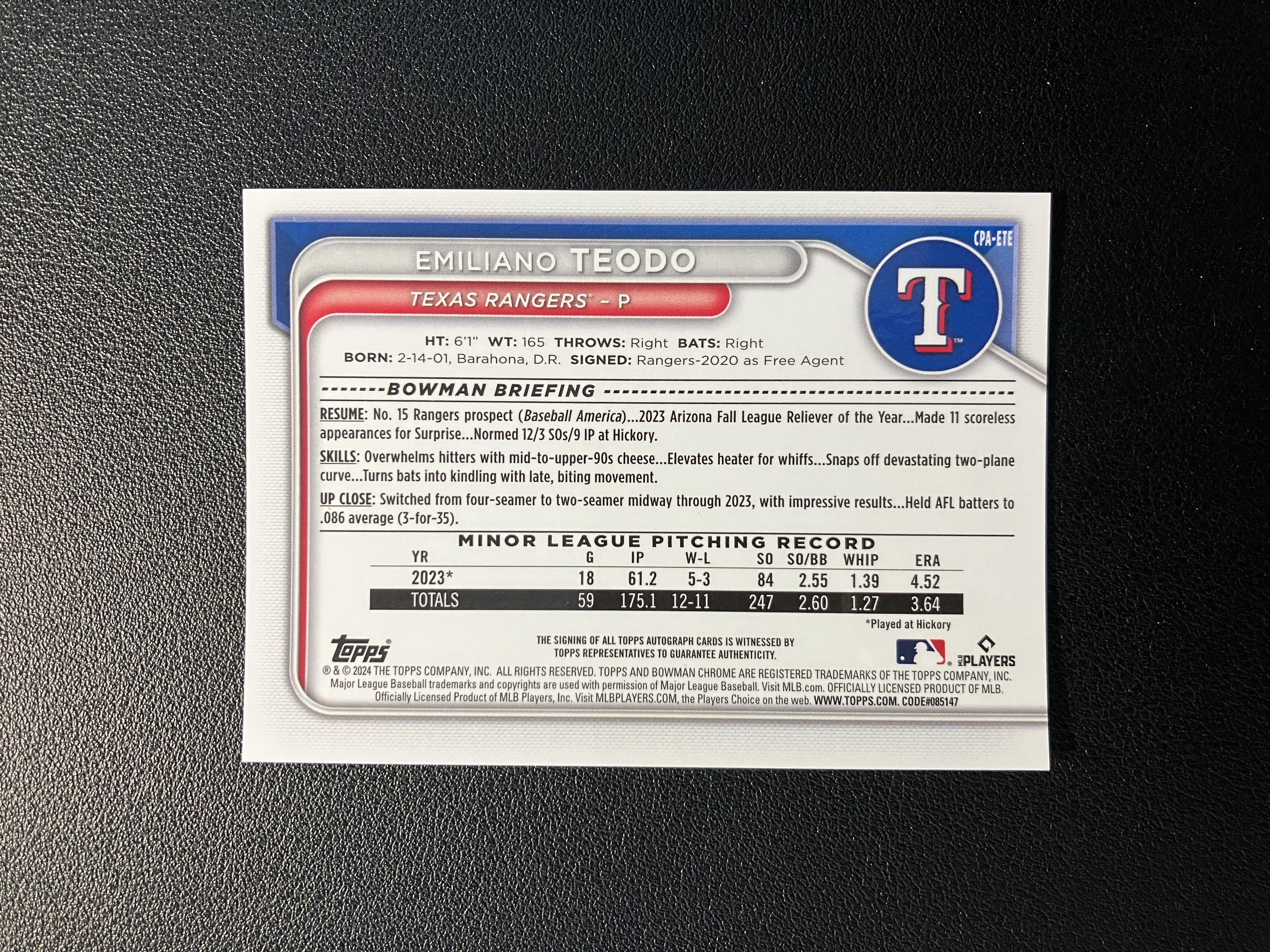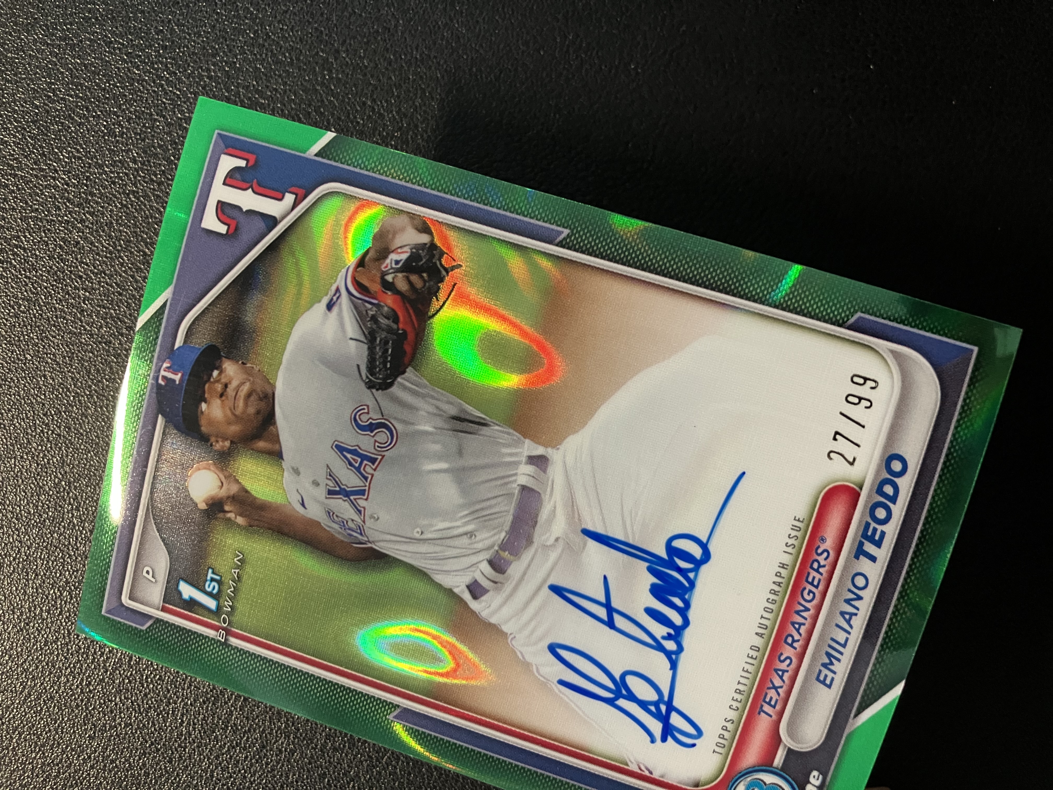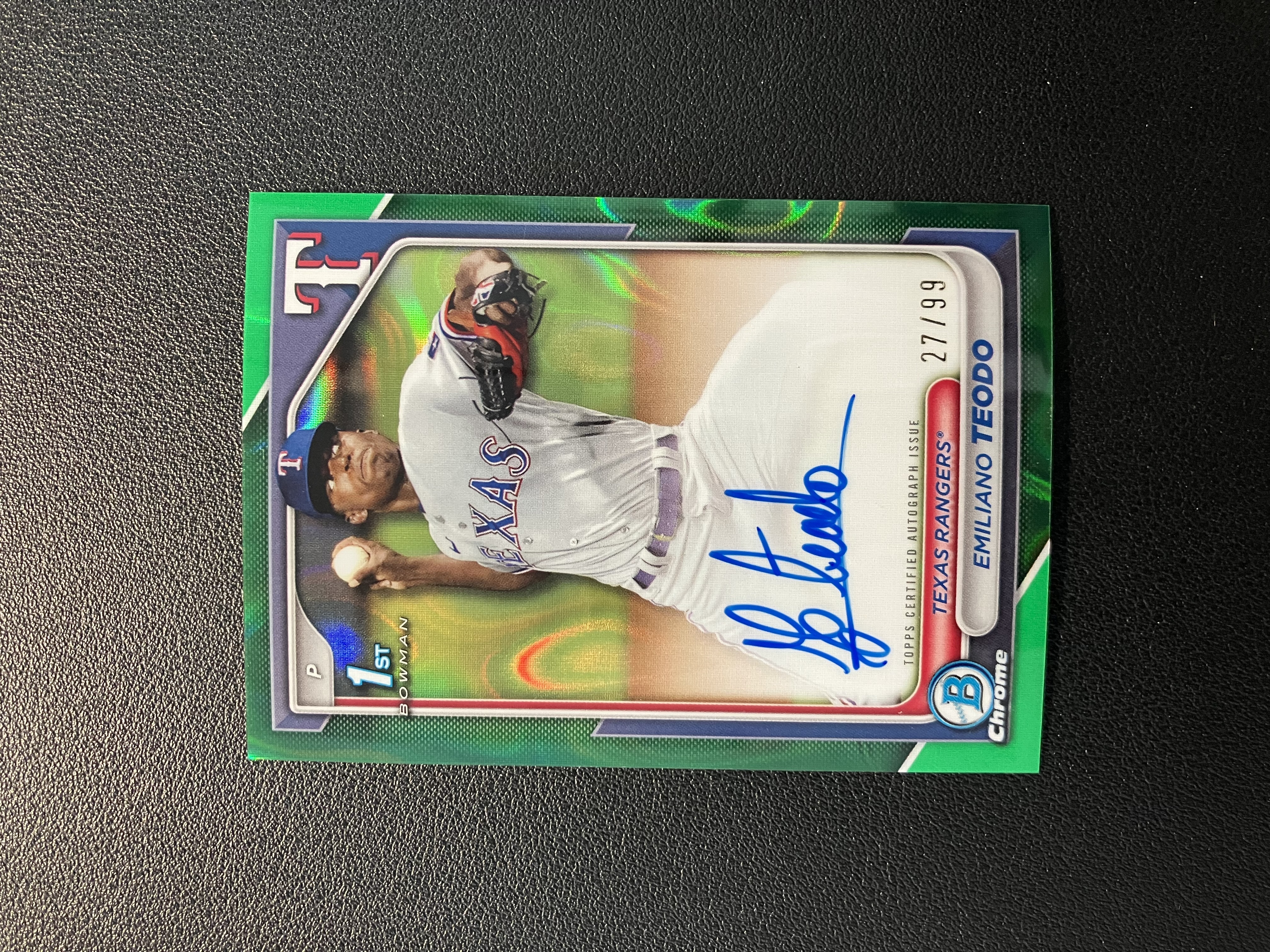 2024 Topps Bowman Chrome Emiliano Teodo 埃米利亚诺-特奥多 27/99编 绿熔岩折 单人签字 卡签 1st 德克萨斯游骑兵 卡品如图 B227