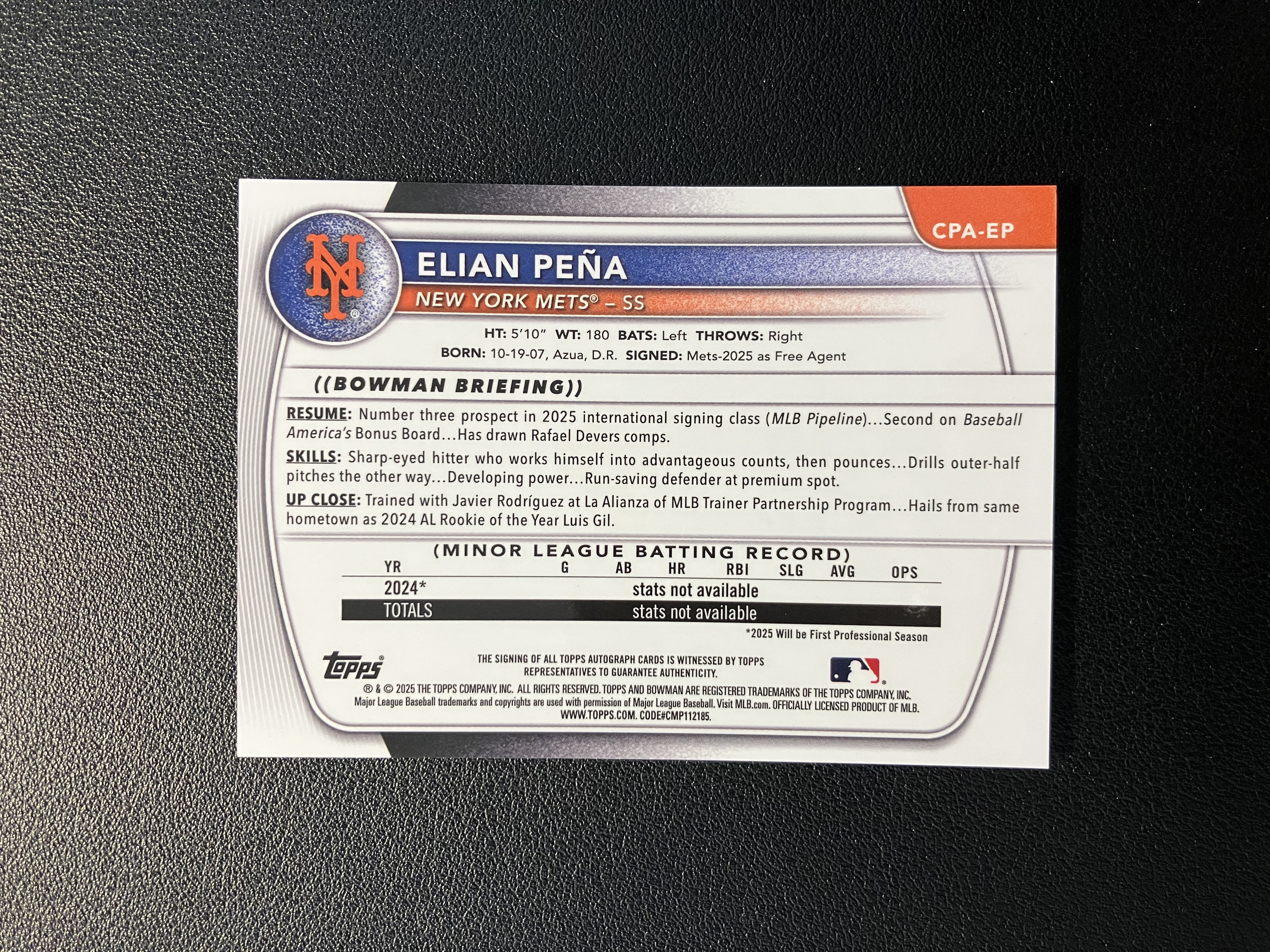 2025 Topps Bowman Chrome Elian Pena 埃利安-佩纳 单人签字 卡签 1st 纽约大都会 卡品如图 B227