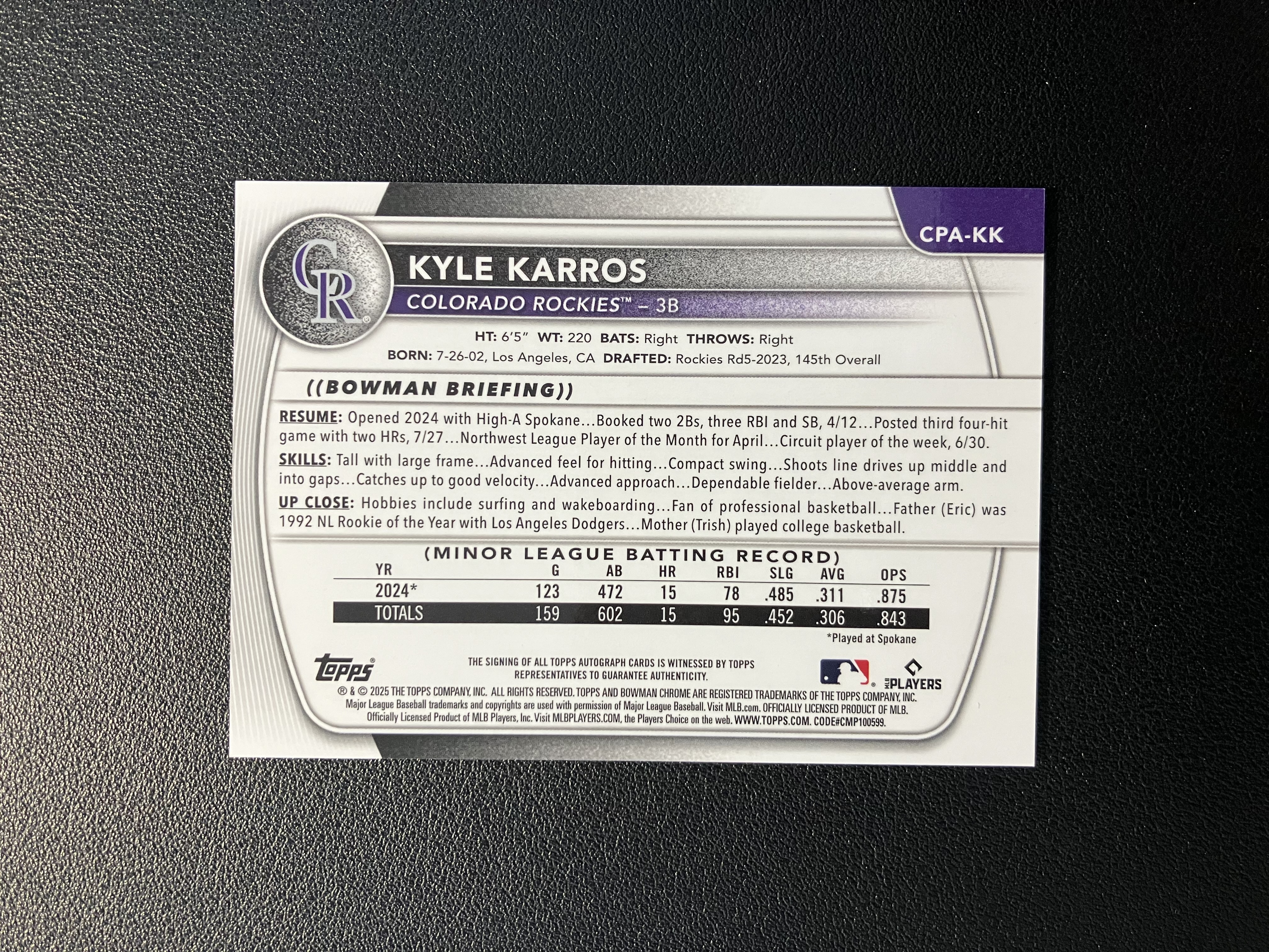 2025 Topps Bowman Chrome Kyle Karros 凯尔-卡罗斯 单人签字 卡签 1st 科罗拉多洛基 卡品如图 B227
