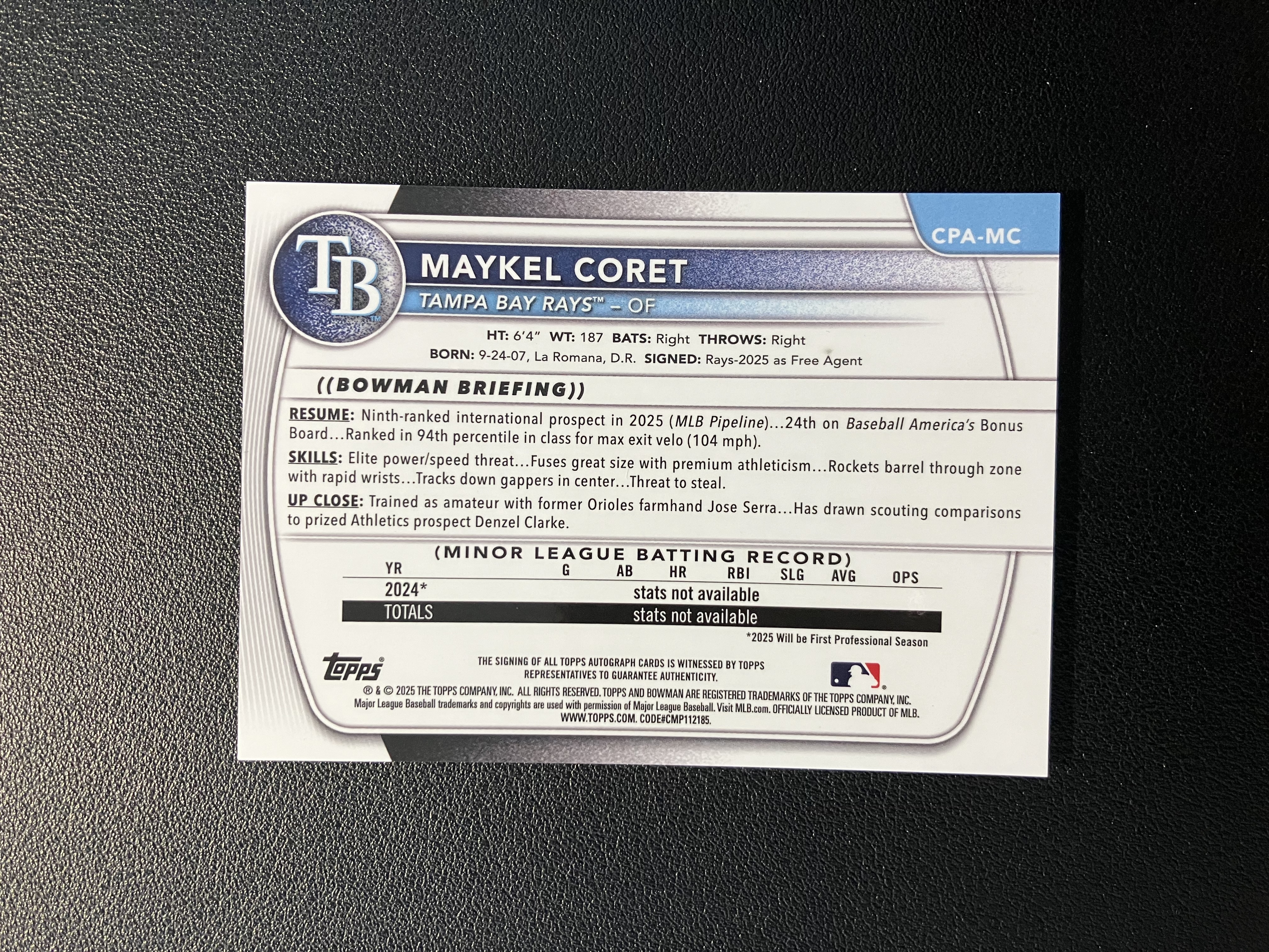 2025 Topps Bowman Chrome Maykel Coret 迈克尔-科雷特 58/150编 蓝熔岩折 单人签字 卡签 1st 坦帕湾光芒 卡品如图 B227