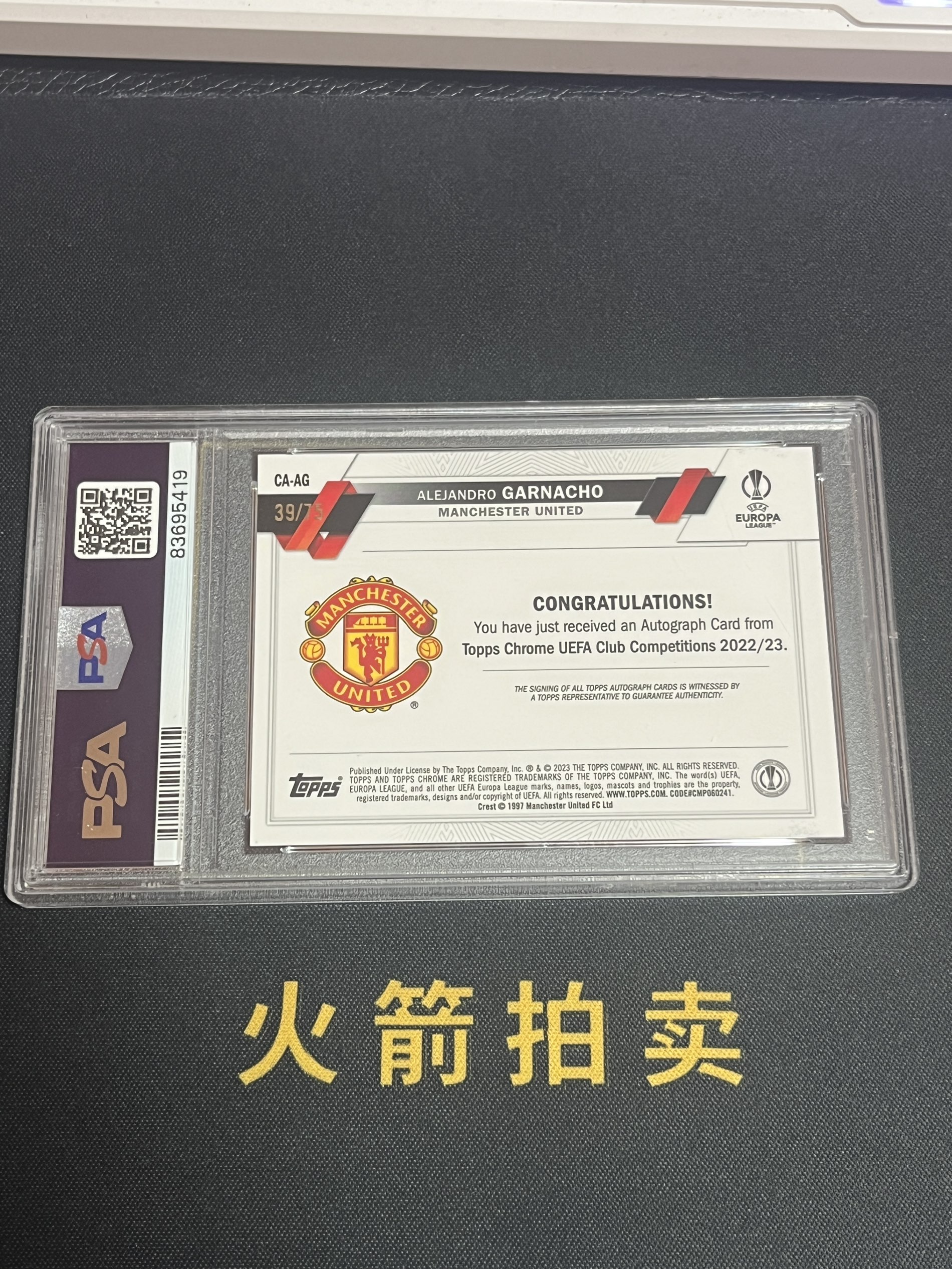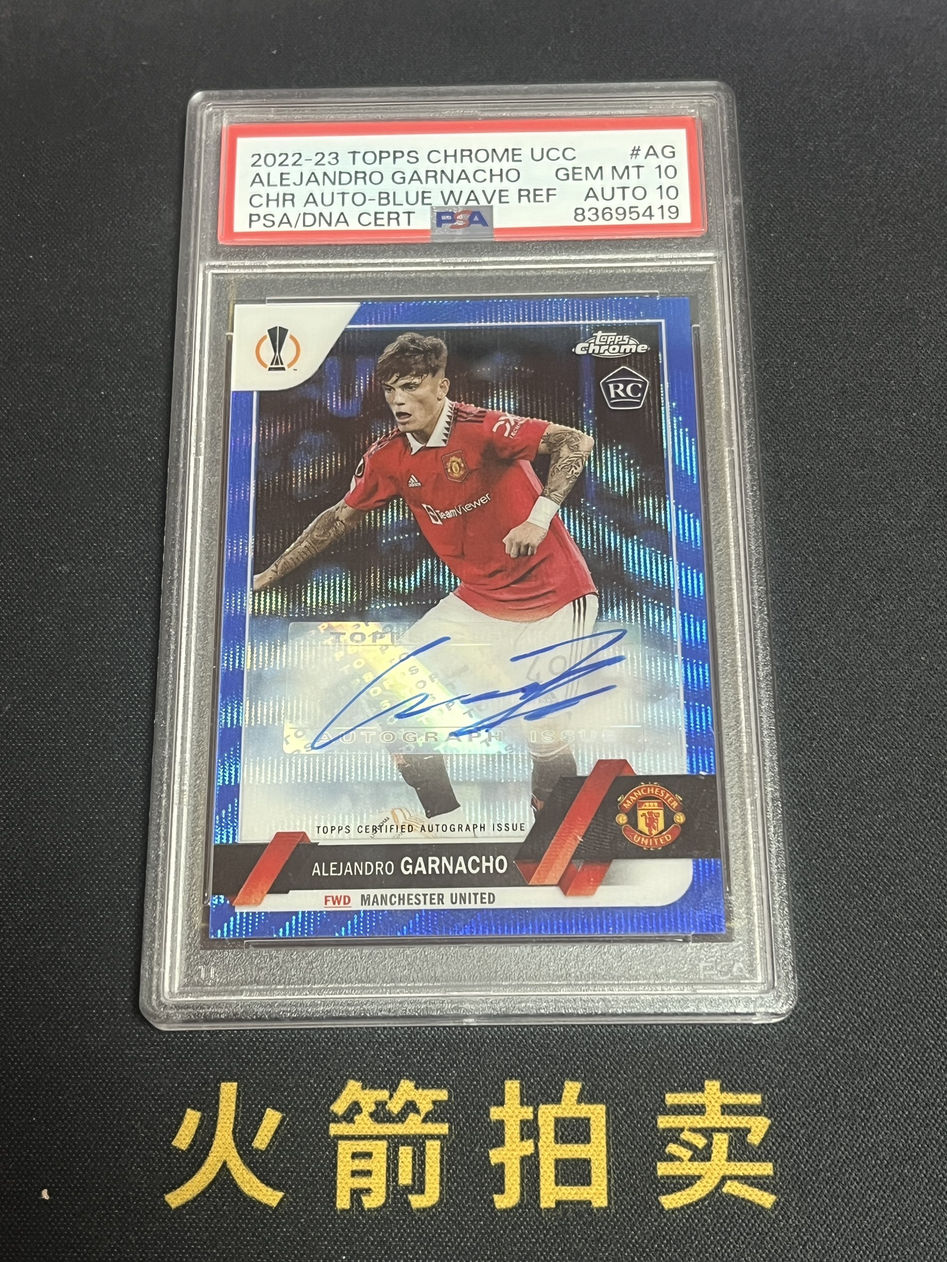 【火箭拍卖 截标预付82%】2022-23 topps chrome alejandro garnacho 欧冠 曼联 加纳乔 新秀 rc 蓝波纹折 折射 签字 39/75编 PSA10 评级 签字10分「胡哥030」1207D10祺