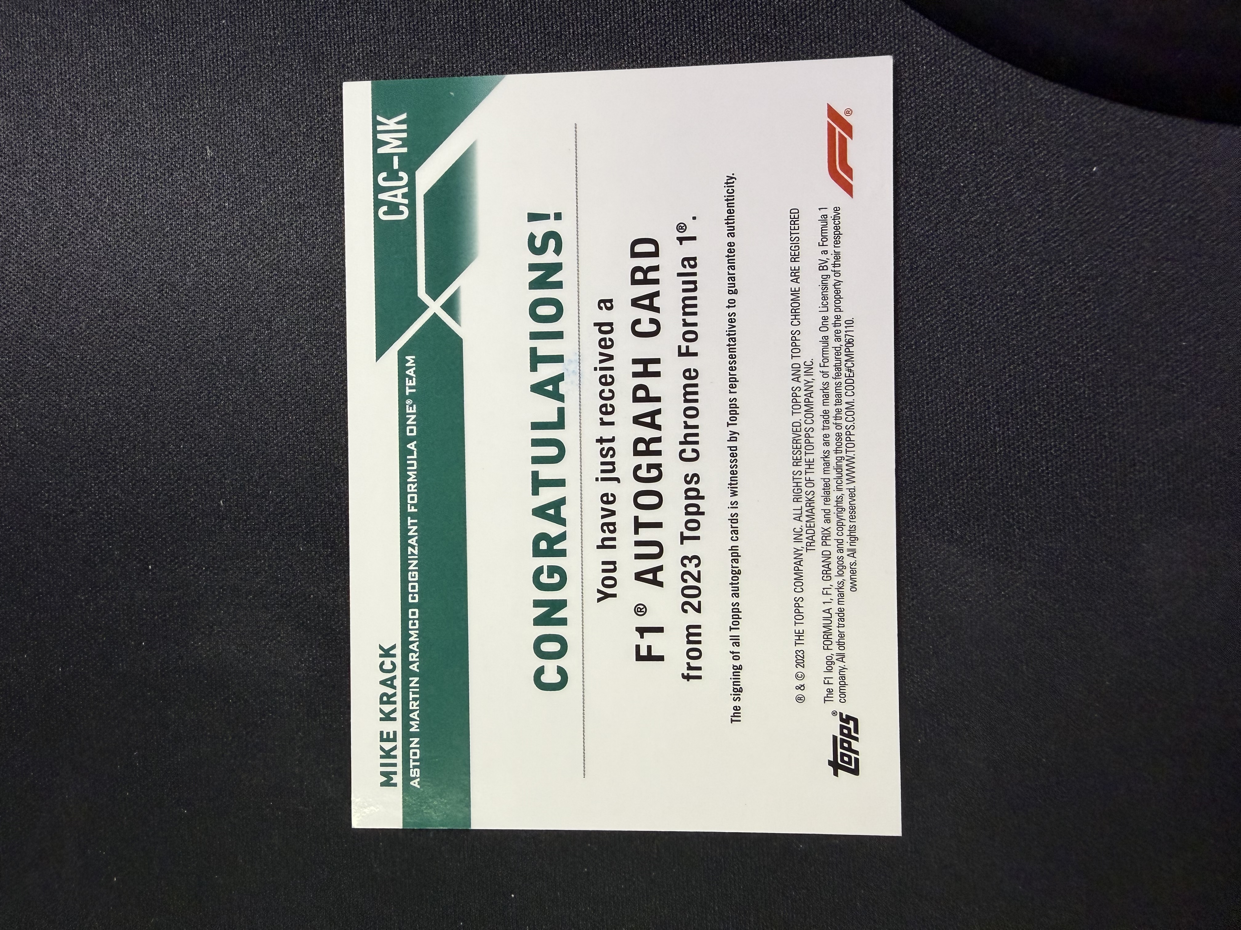 2023 Topps Chrome Mike Krack 迈克 克拉克 签字 金折 折射 26/50编 签字 定妆照 收藏必备 PPP