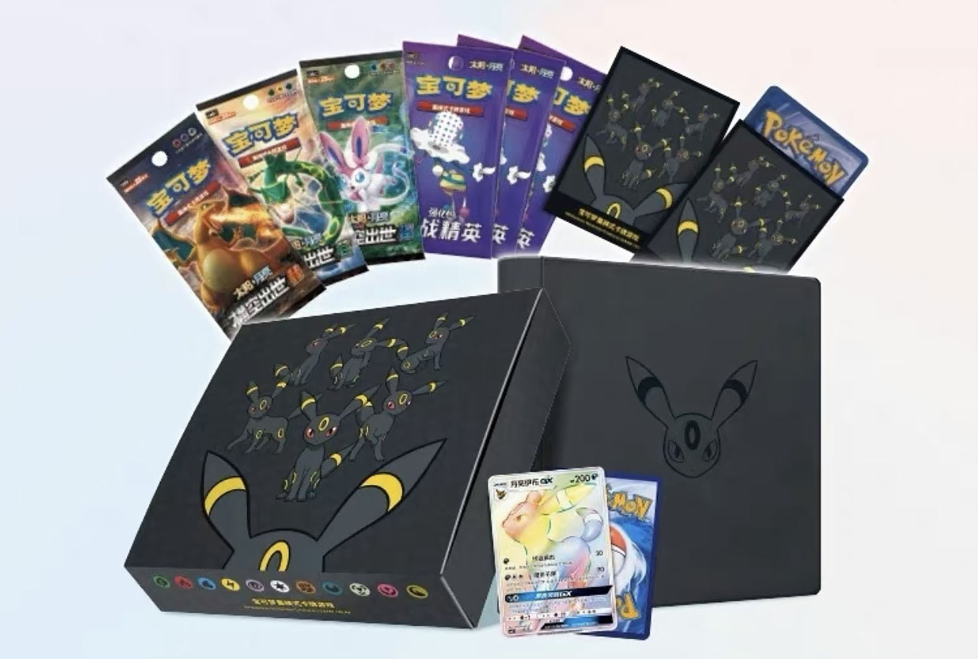 伊布GX套装礼盒内含如下内容: 1、对应的伊布主题艺术卡套 x1套 2、对应的伊布主题收藏卡册 x1本 3、对应的伊布GX卡牌(1阶进化) x1张 4、随机伊布GX卡牌(基础)x1张 5、横空出世 补充包(25张装) x3包 6、对战精英 强化包(6张装) x3包
