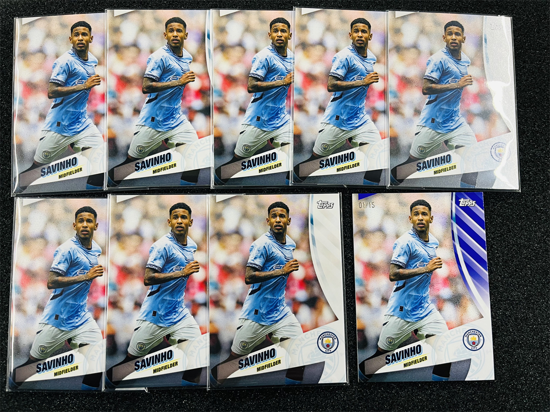 【VC拍卖0手续费预付80%】2023-24 topps 曼城队盒 萨维尼奥 base 15编 紫折 1/15 一图打包 选图帅气 实卡好看 凑套必备——YYT