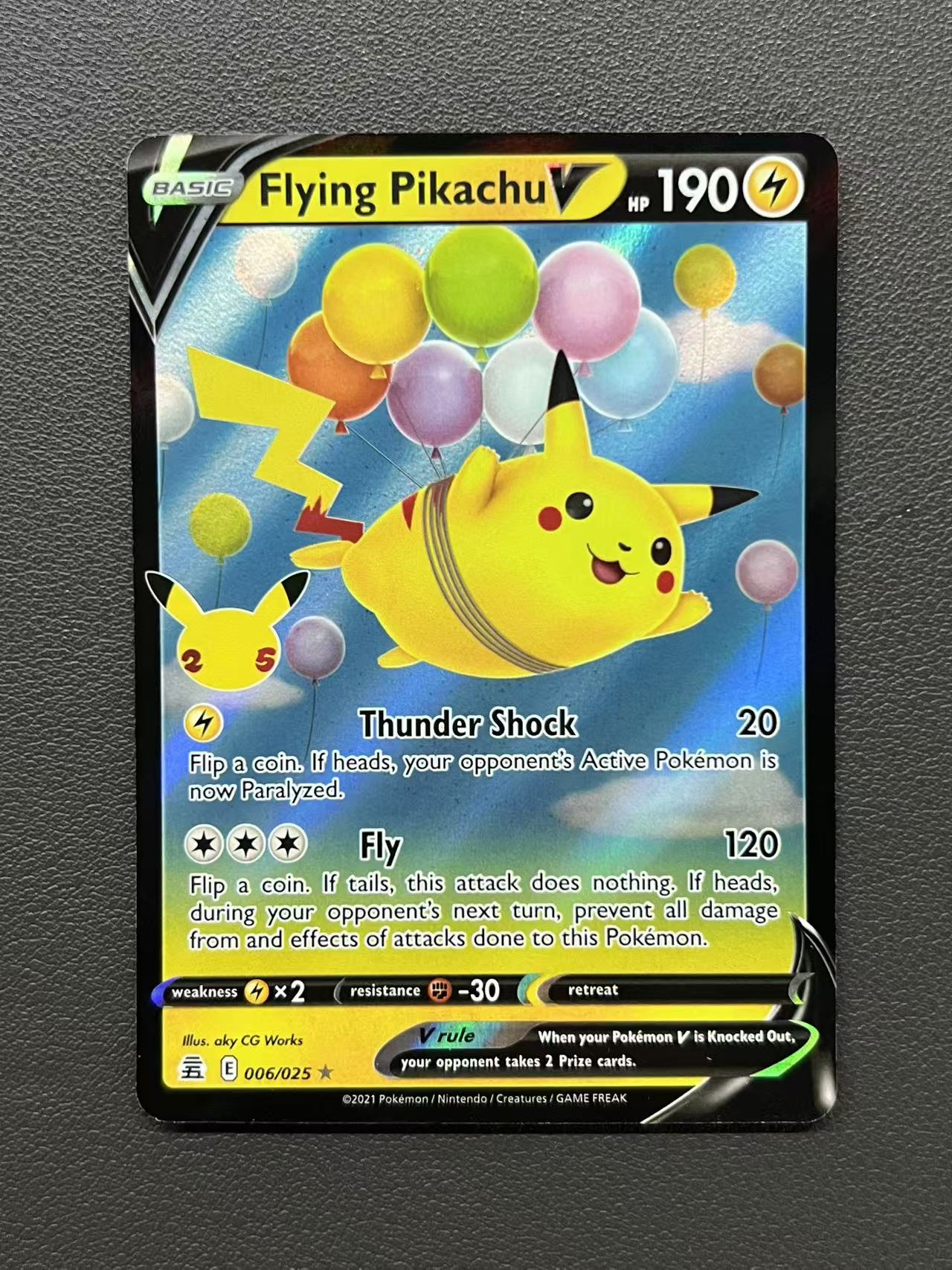 2021 PTCG Pokemon 皮卡丘 【Boom专业速拍】1.3-宝 TCG 宝可梦 庆典 飞翔皮卡丘V 006/025 美版英文 全图闪卡 边角白点通病 介意慎拍2