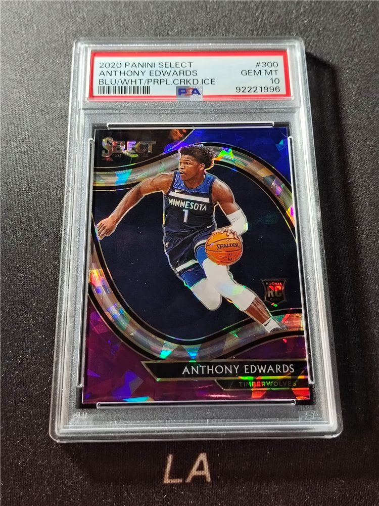 【LA拍卖】2020-21 Panini Select Anthony Edwards 新秀RC 安东尼 爱德华兹 华子 森林狼新王 未来超巨 3级 三级 蓝白紫 三色碎冰折 base PSA评级10分 T59B