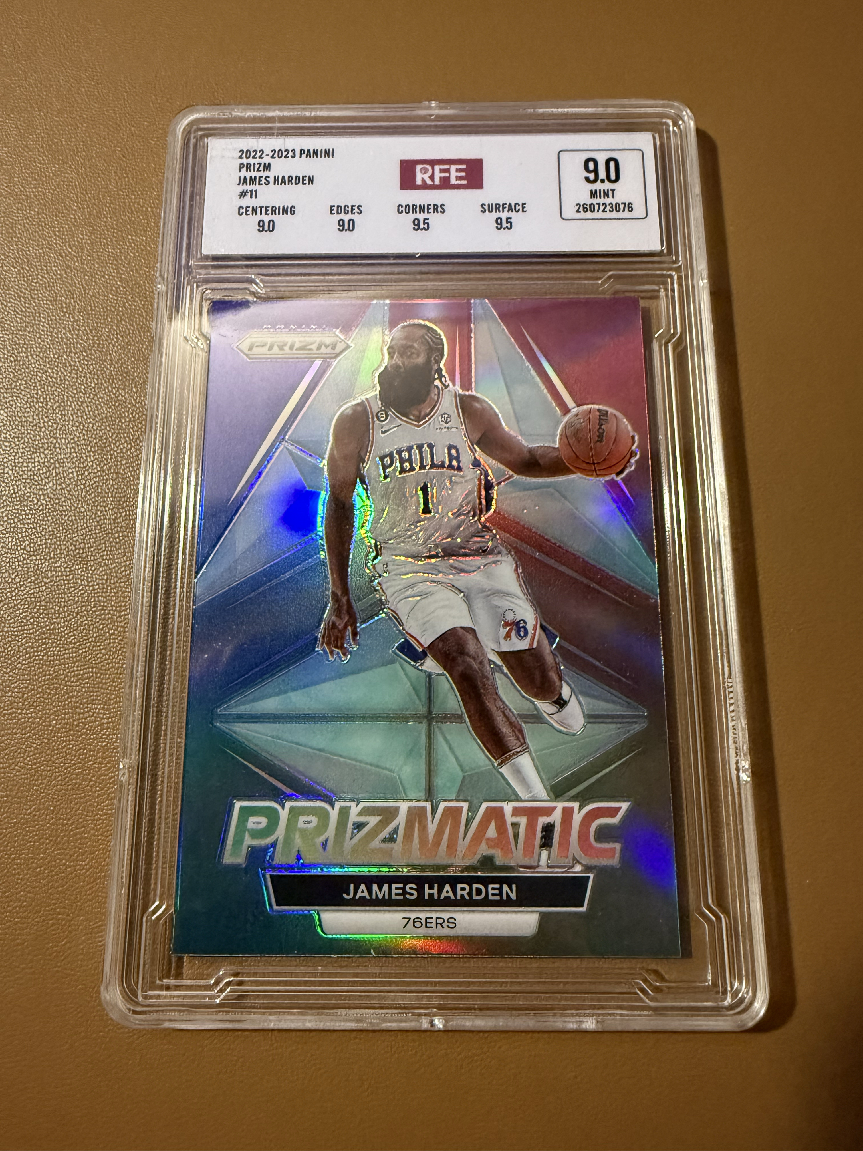 2022-23 Panini Prizm James Harden RFE9,詹姆斯哈登,76人队大胡子,火箭姚明后辈,帕尼尼Prizm系列,棱镜折射效果超炫,RFE评级9分卡品保障!