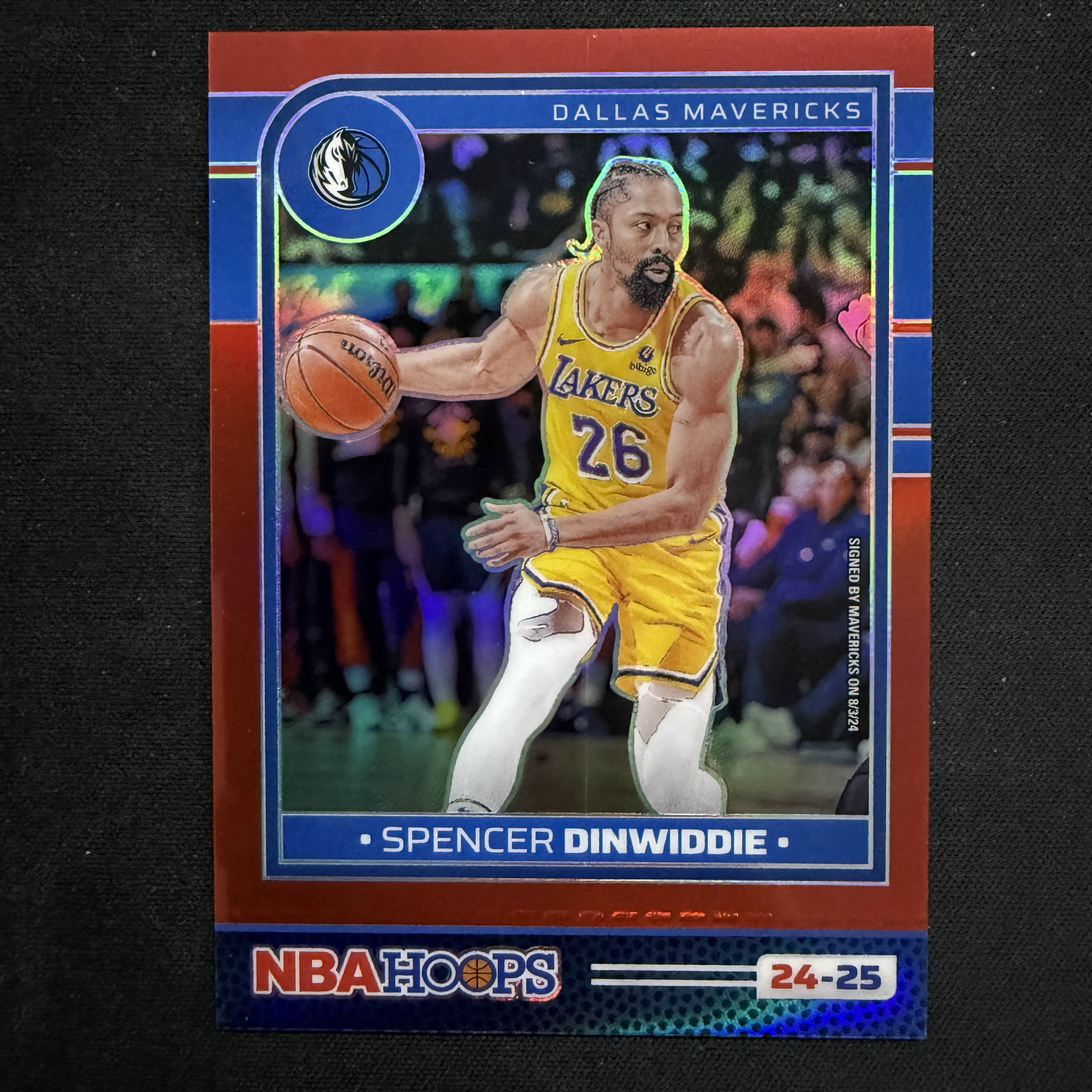 2024-25 Panini Hoops Spencer Dinwiddie 【SC拍卖】丁威迪 独行侠 90/99编 红折 瑕疵如图收藏必备(HTM777)