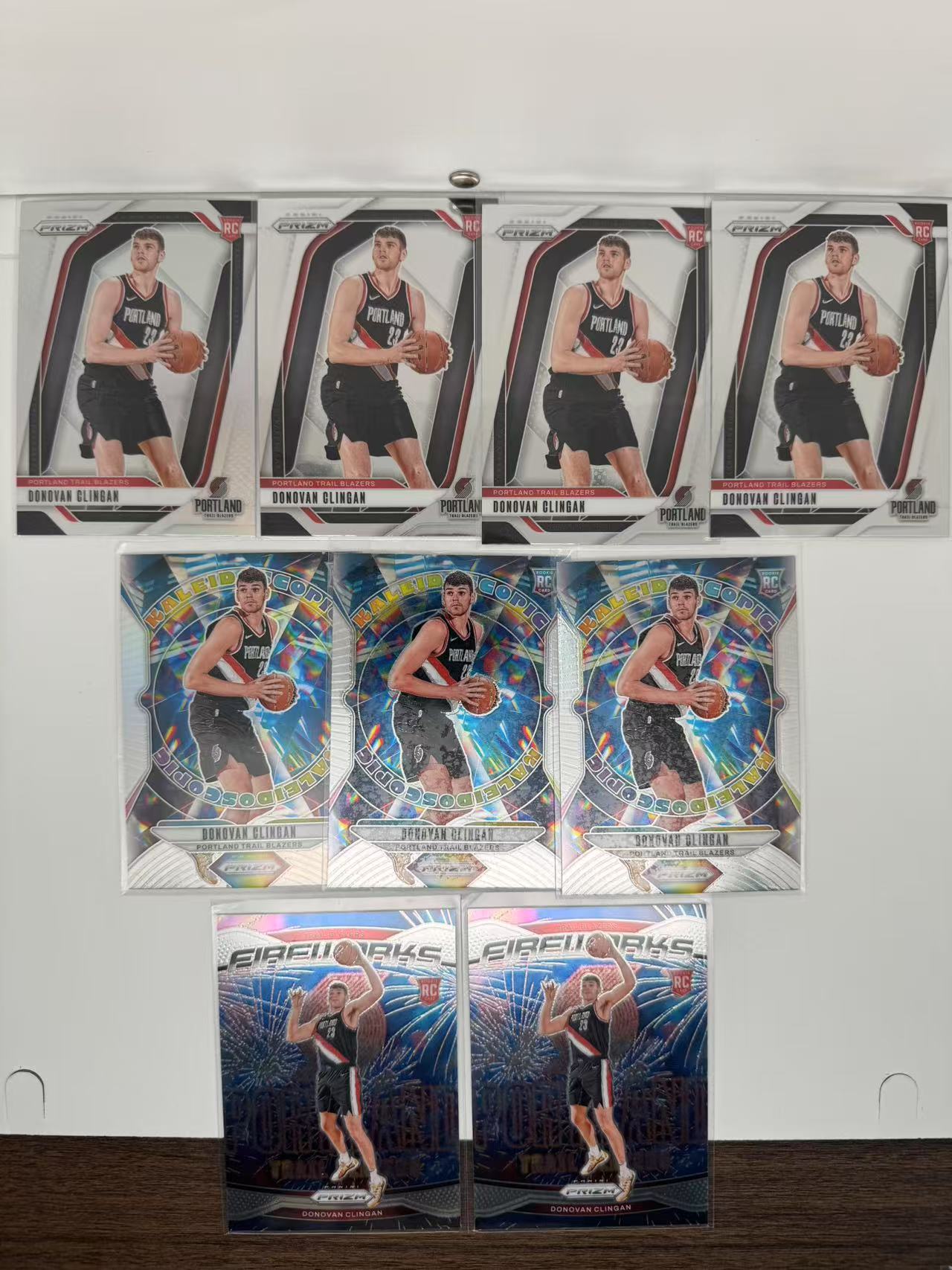 2024-25 Panini Prizm DONOVAN GLINGAN RC 【宁动拍卖】篮球PZ 开拓者 多诺万 克林根 LOT9张 打包 新秀RC 银折 万花筒特卡 收藏必备 ziggy