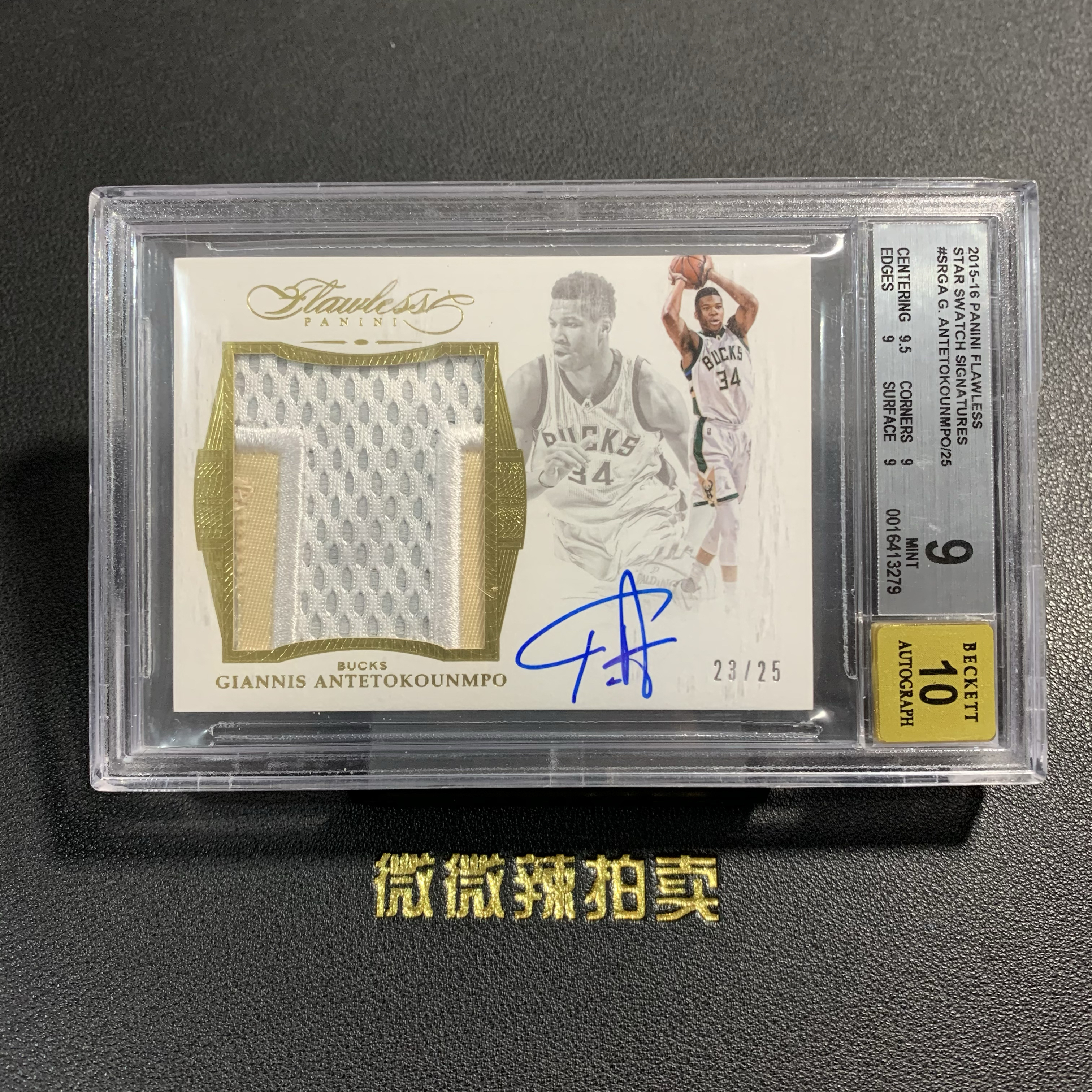 【微微辣拍卖 诚接代卖】 0303LJ 2015-16 flawless 手提 大窗球衣patch SS 签字 卡签 字母哥 雄鹿 扬尼斯阿德托昆博 23/25编 bgs9/10分评级 金版