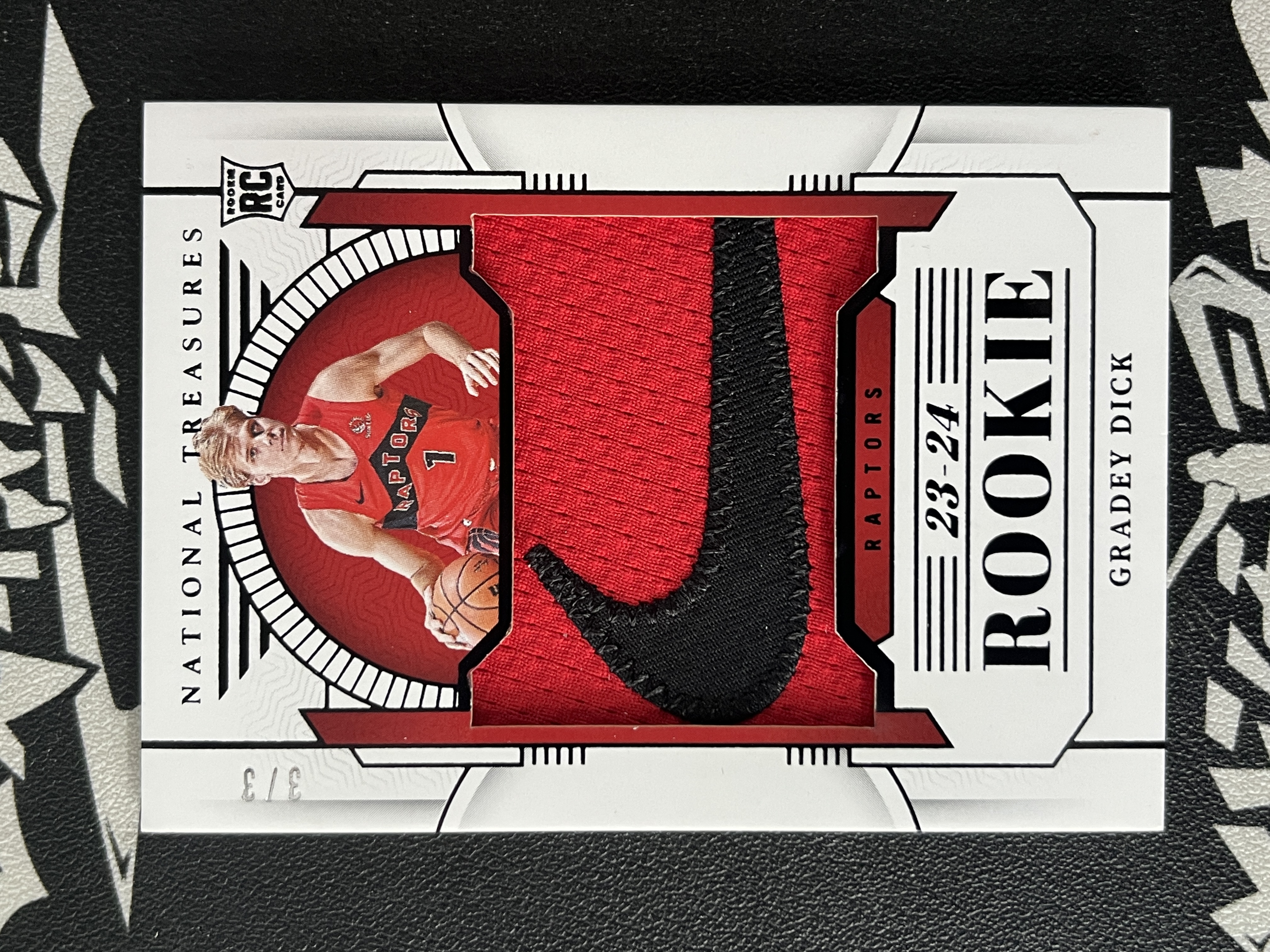 【暴扣拍卖 接代卖】战斧依依C26 2023-24 NT 国宝 Gradey Dick 格雷迪 迪克 RC新秀 猛龙 3/3编 尾编 黑折 耐克logo钩子球衣物料切割 收藏佳品 卡品如图
