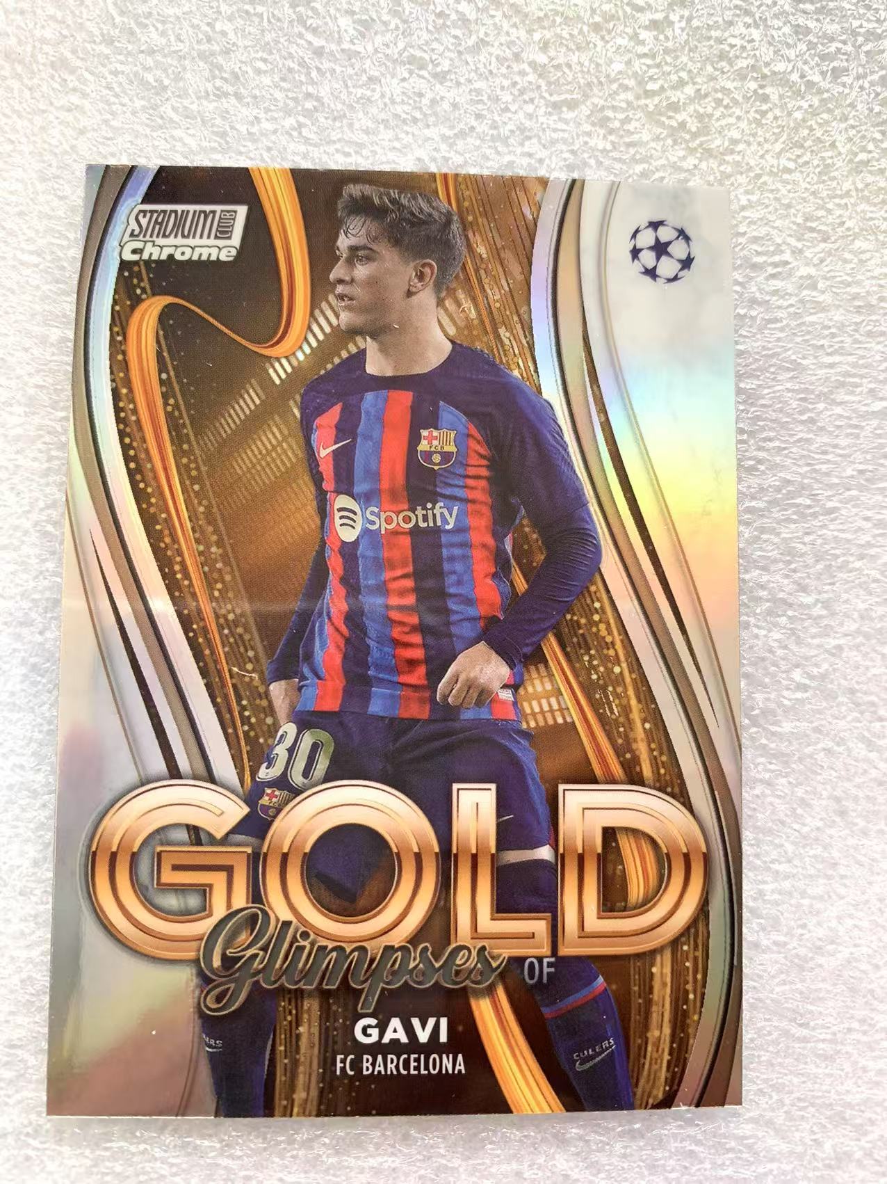2021-22Topps Chrome Stadium Club 欧冠竞技场 巴萨 加维 银折 折射 黄金一瞥 gold 特卡