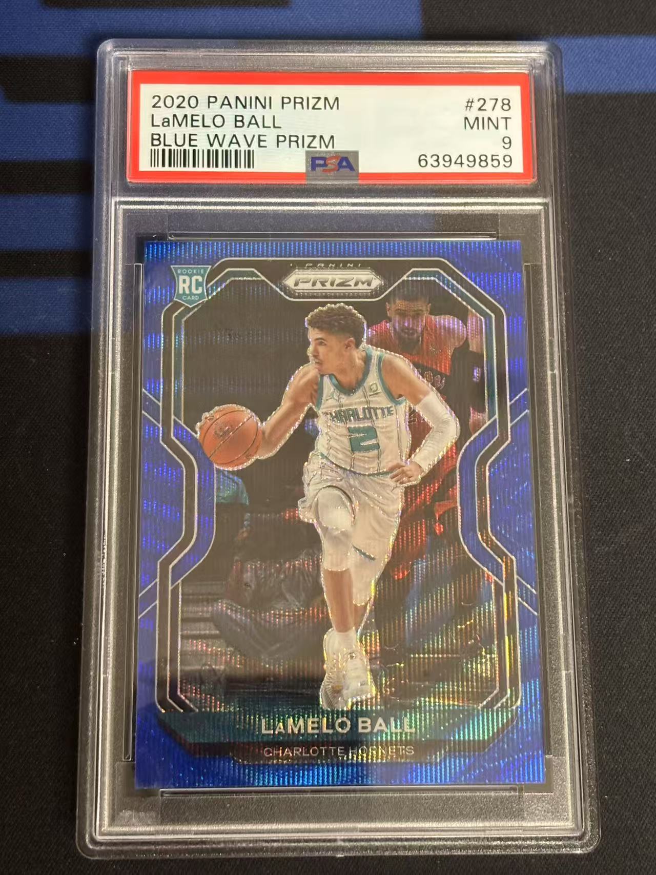 2020-21 Panini Prizm LaMelo Ball RC NBA 黄蜂队 全明星后卫 三球 拉梅洛鲍尔 BALL PZ新秀 蓝波纹折射 PSA9分