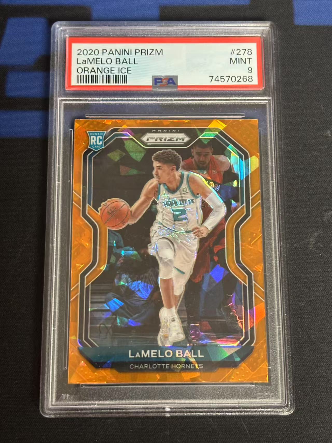 2020-21 Panini Prizm LaMelo Ball RC NBA 黄蜂队 全明星后卫 拉梅洛鲍尔 三球 BALL 新秀 折射 橙碎冰 PSA9分 评级