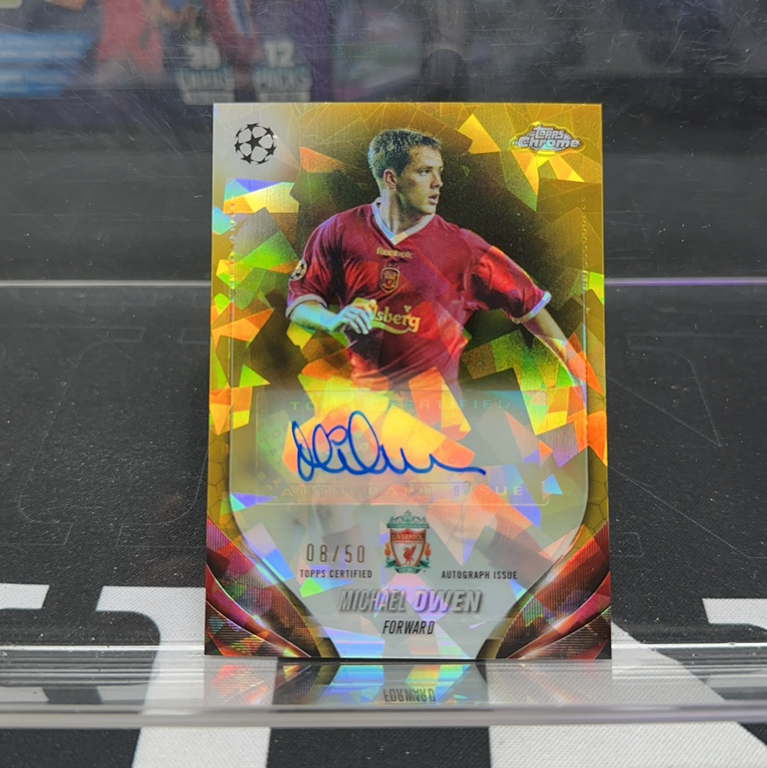 2023-24 Topps Chrome Michael Owen 【大熊拍卖】迈克尔 欧文 8/50编 蓝宝石 金碎冰 签字 利物浦传奇前锋 微瑕如图 纵横天下