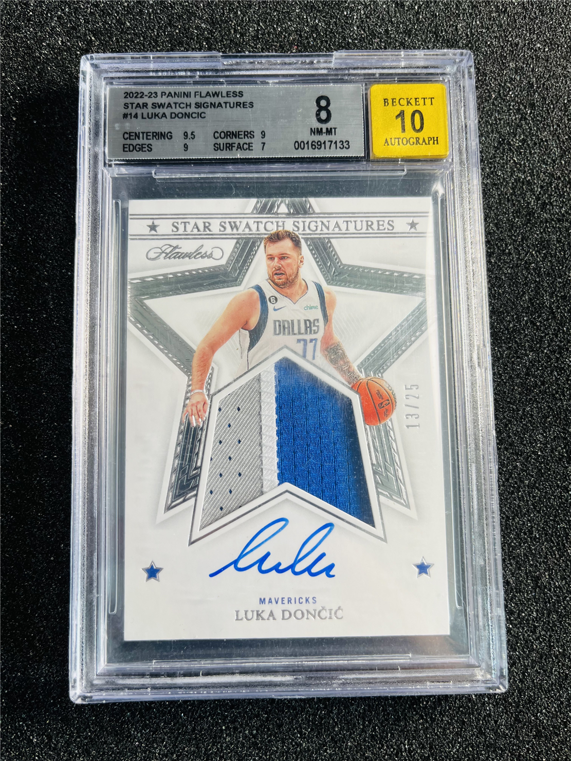 【VC拍卖0手续费到卡预付90%】2022-23 Flawless 手提 独行侠 Luka Doncic 卢卡 东契奇 25编 SS patch 签字 13/25 BGS8墨迹10——DGIN