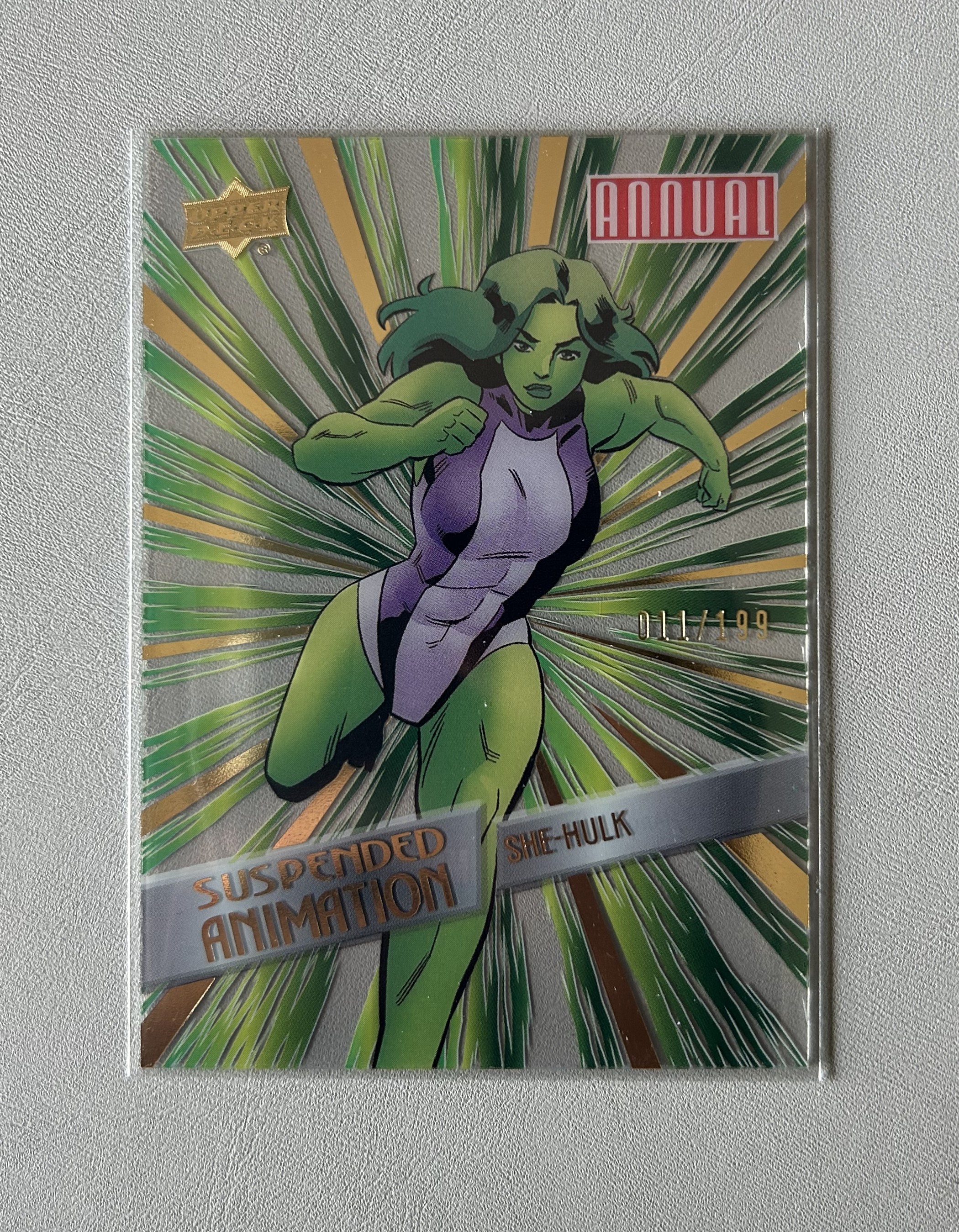 2025 Upper Deck Marvel (MCU) Annual年鉴 女浩克 序号43 011/199编 定格动画胶片特卡T3三阶 2023-24 UD漫威漫画年度盒收官系列 粉条代拍