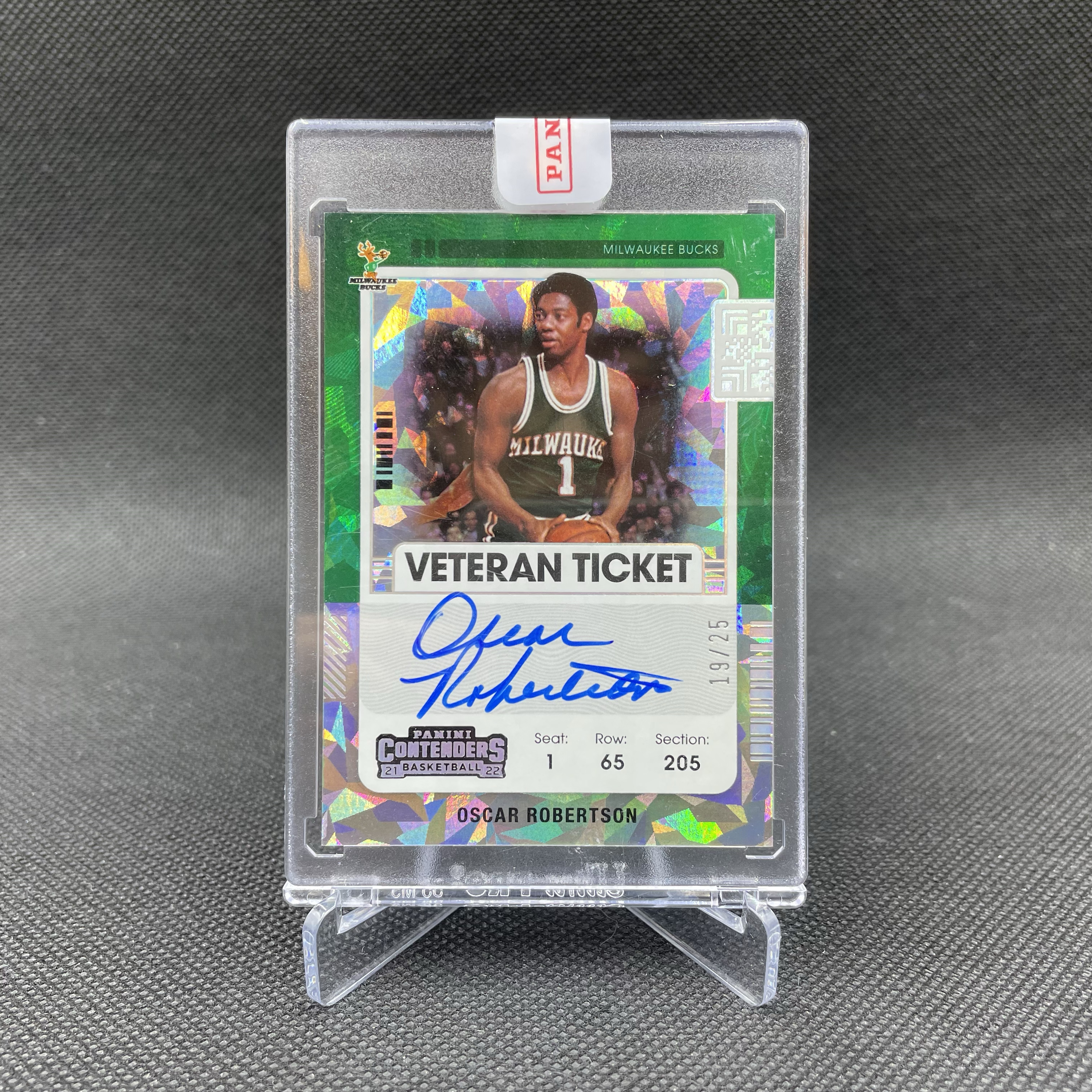 2021-22 Panini Contenders Oscar Robertson 【无界代卖】球票 雄鹿 奥斯卡 罗伯特森 19/25编 签字 卡签 碎冰折 大O 原封砖 传奇名宿 品墨如图 ZYN