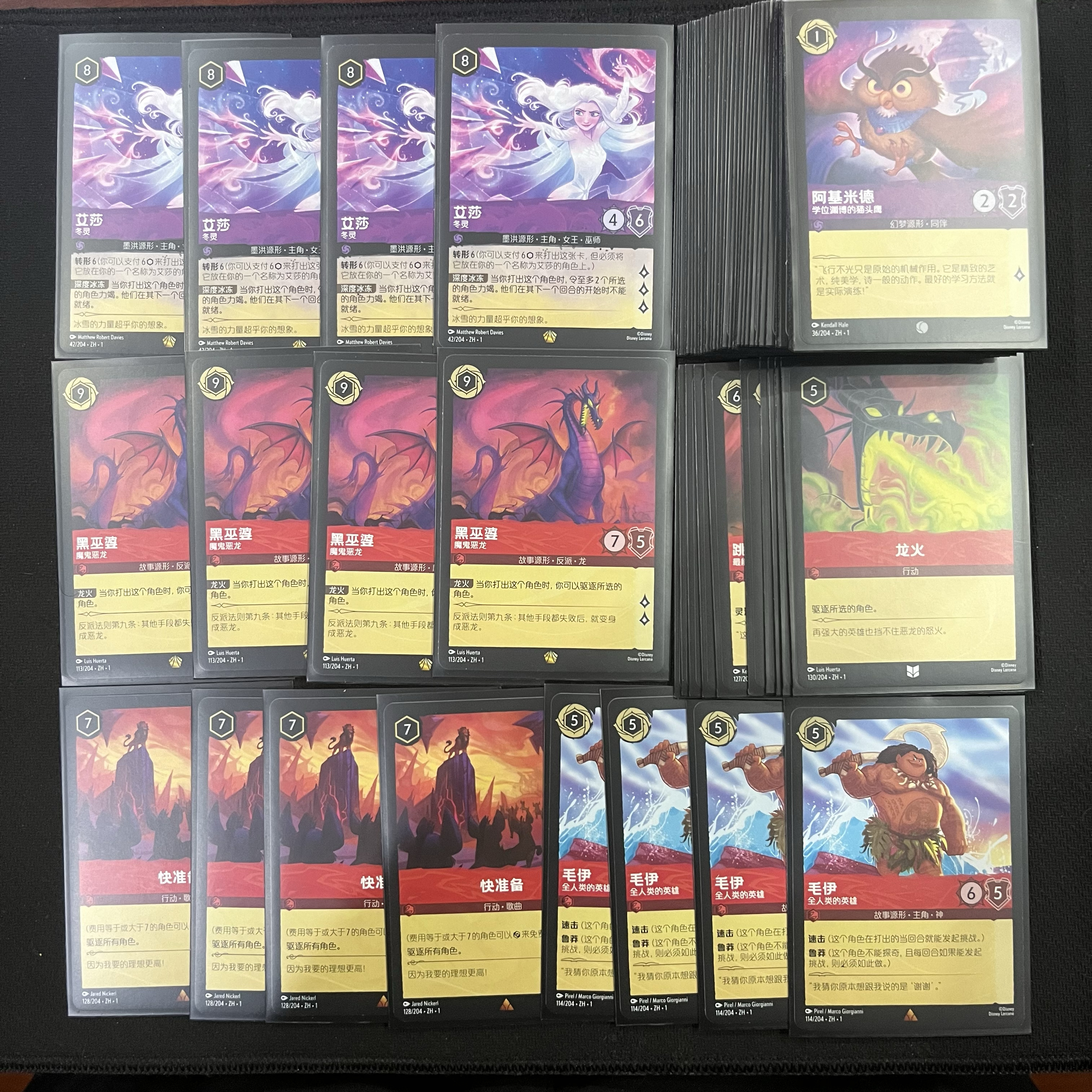 2025 LORCANA 泼墨第一章 洛卡纳 迪士尼 chs 红紫卡组 含4张L传奇艾莎 黑巫婆 含艾莎冬灵卡套 强力卡组 打牌必备(小鸡代卖 墨)