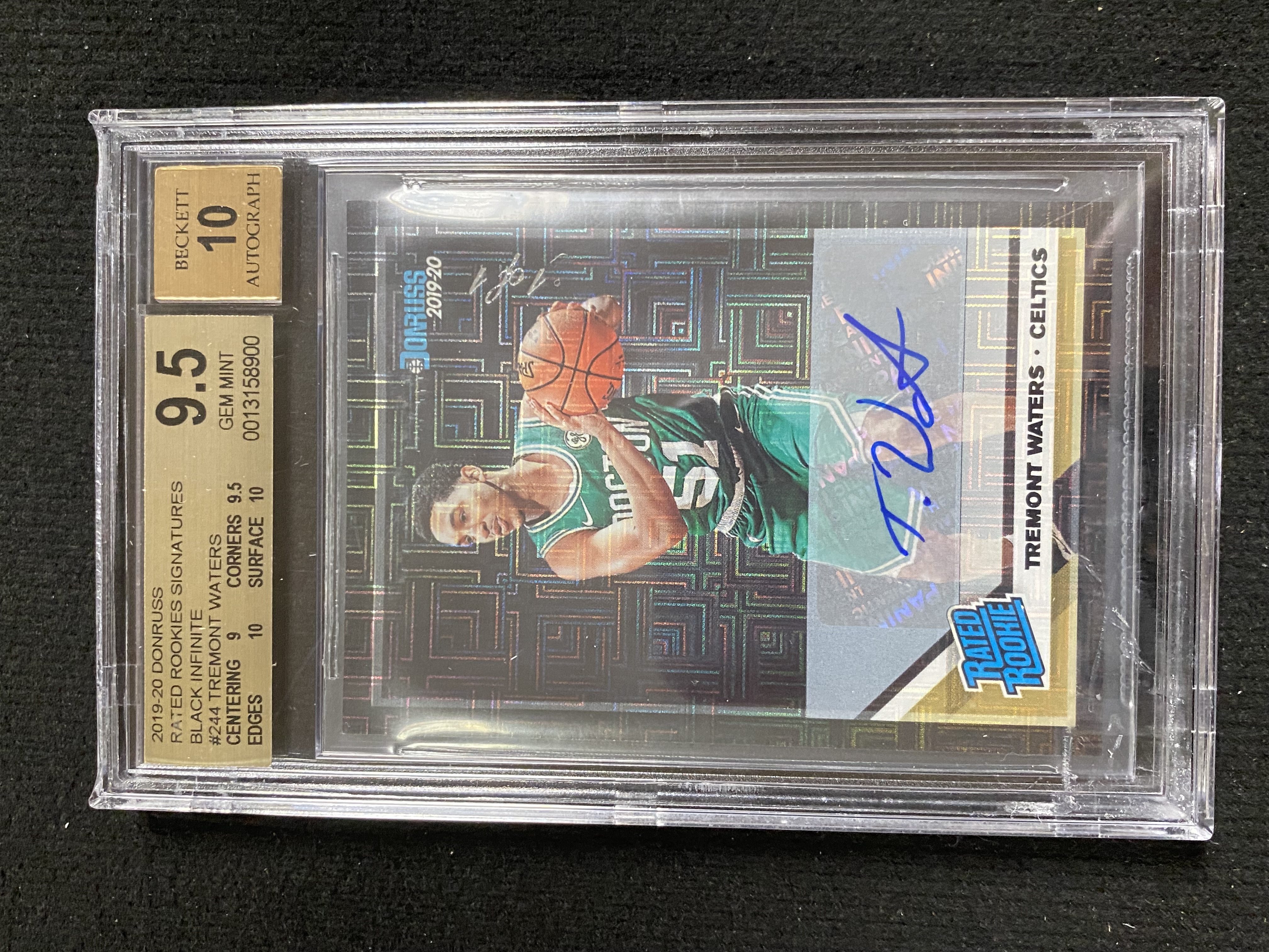 2019-20 Panini 杜蕾斯 Tremont Waters RC 【欧皇代卖,拍前请看描述】凯尔特人 新秀 特里蒙特 沃特斯 签字 黑迷宫折 1/1编 贴签 BGS评级9.5/10分(翔子)4