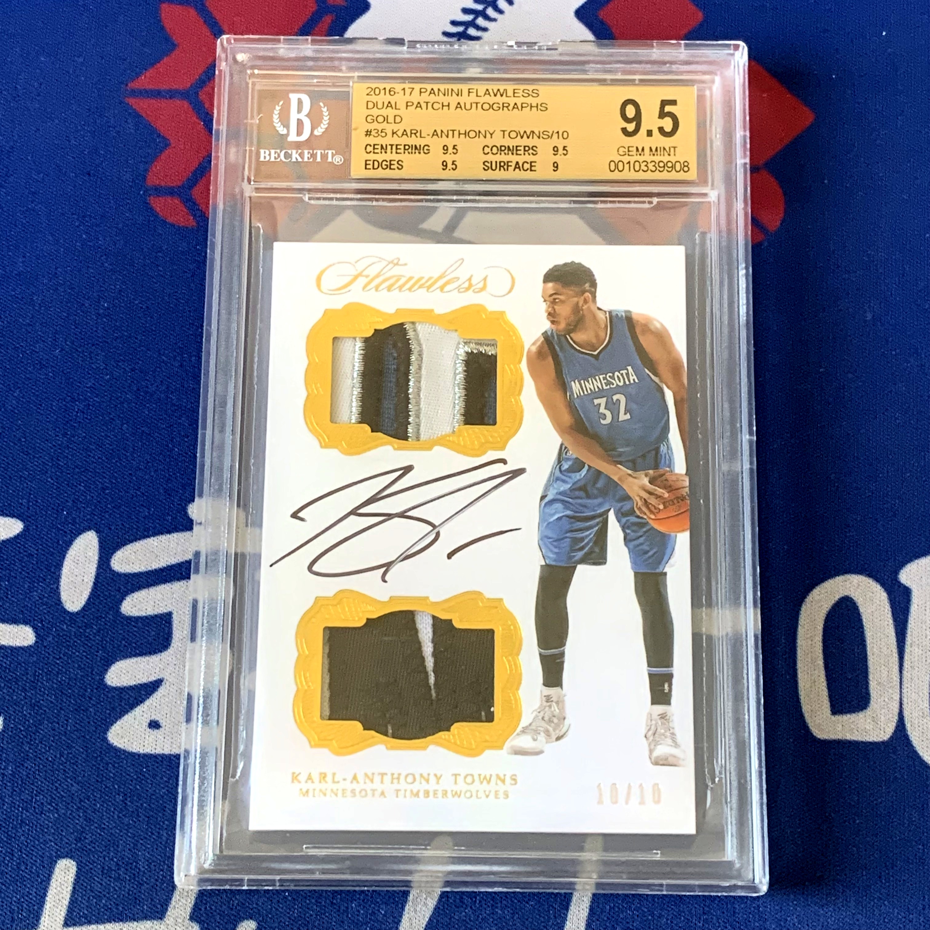 2016-17 Panini Flawless Karl Anthony Towns 【海宝】手提 森林狼 唐斯 10/10编 尾编 金折 双窗腰子PA签字卡 卡签 BGS金标9.5/10分【烂漫1】