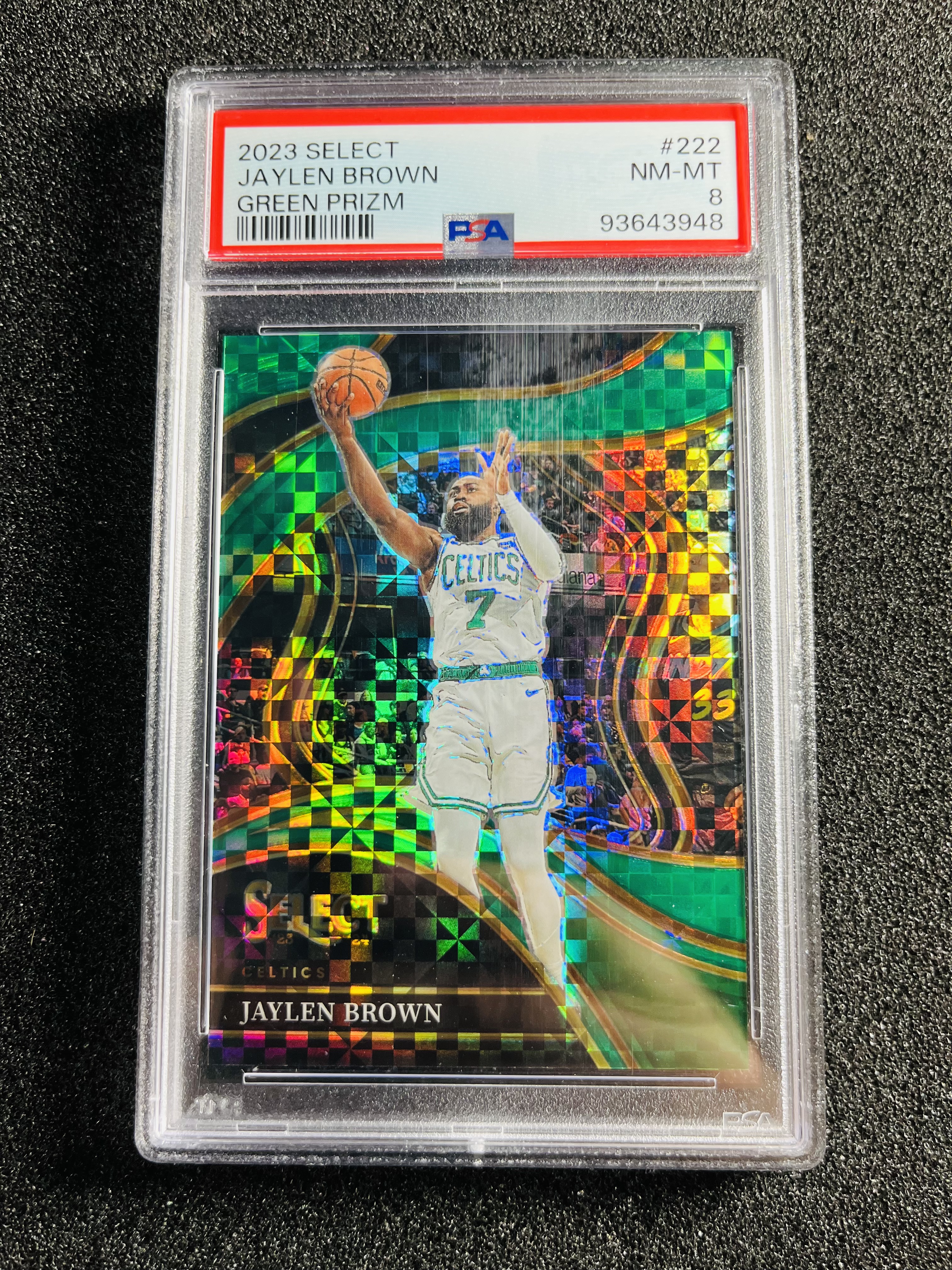【VC拍卖0手续费预付90%】2023-24 Panini Select 凯尔特人 Jaylen Brown 杰伦 布朗 绿折 棋盘折 格子折 5编 低编 PSA8分 FMVP 收藏必备——五号
