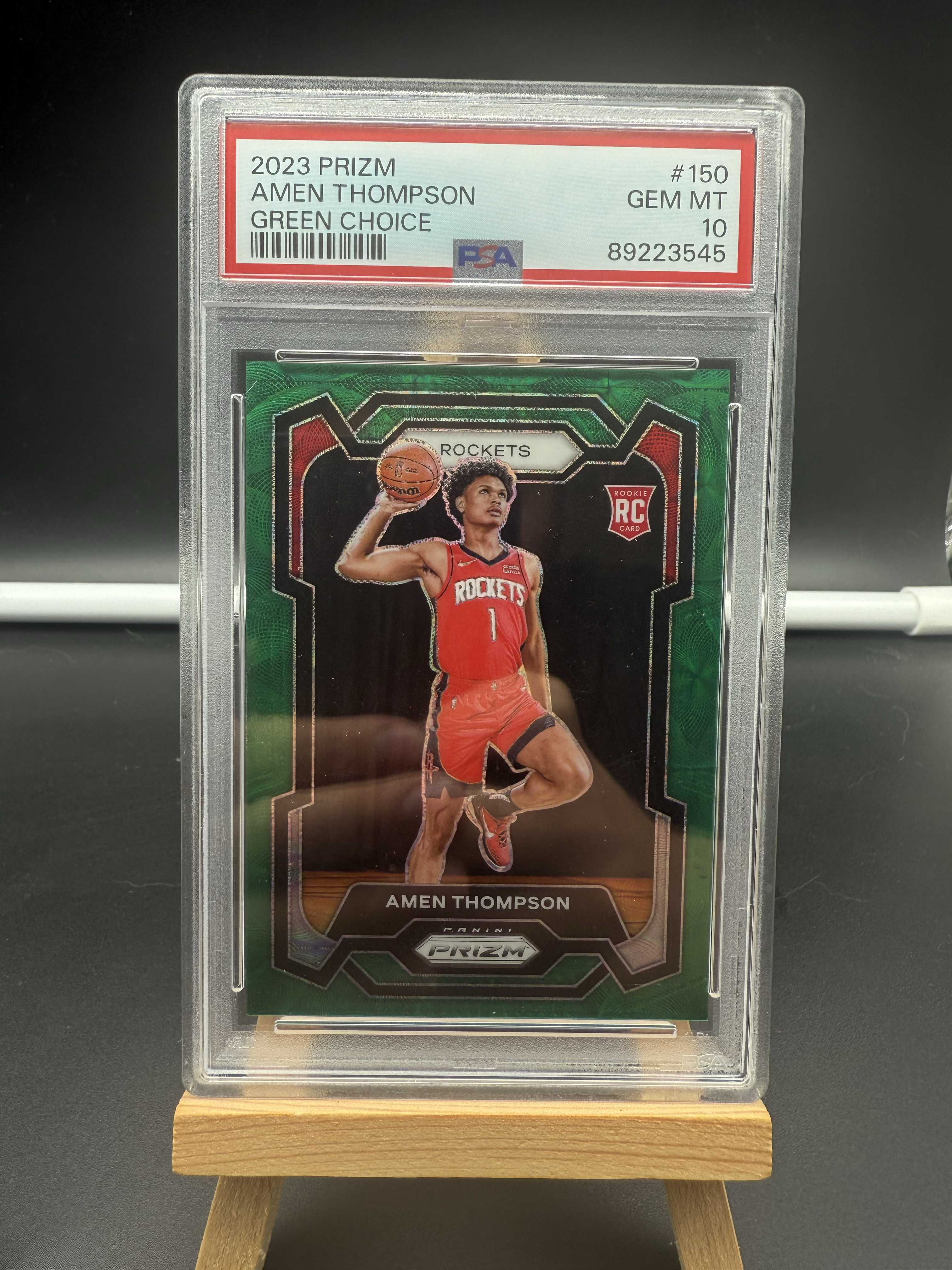 2023 Panini Prizm Amen Thompson RC 阿门 汤普森 火箭 新秀 pz 绿圈圈折 3/8编 猝死独占 稀有 PSA10满分卡品 季后赛准备起飞 95
