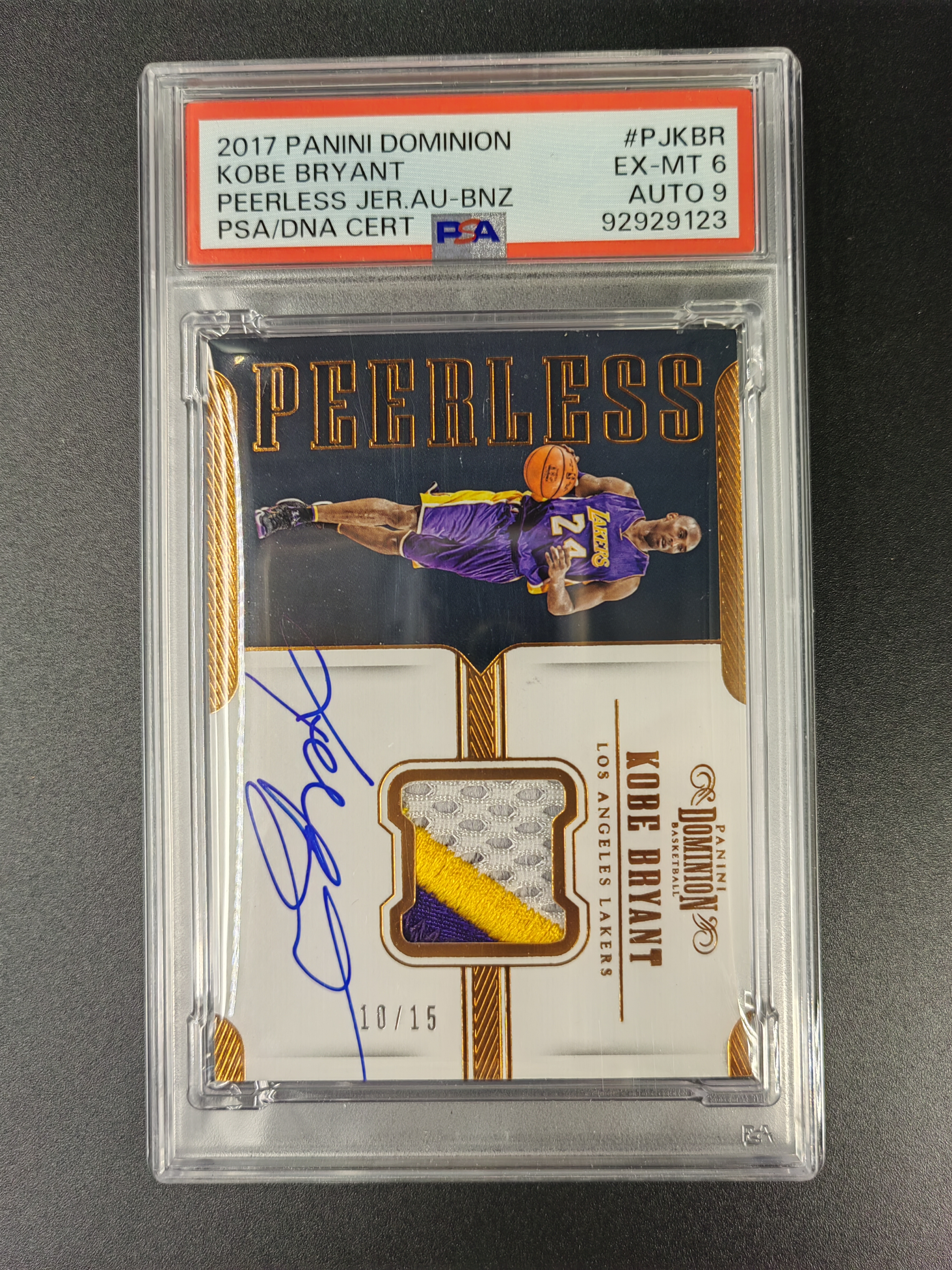 【魔都宝鉴 pfy14】2017-18 Panini Dominion 卡签签字 球衣patch 三色切割 15编低编大比例 Kobe 科比 黑曼巴 湖人 传奇名宿 PSA6分签字9分 超大hit
