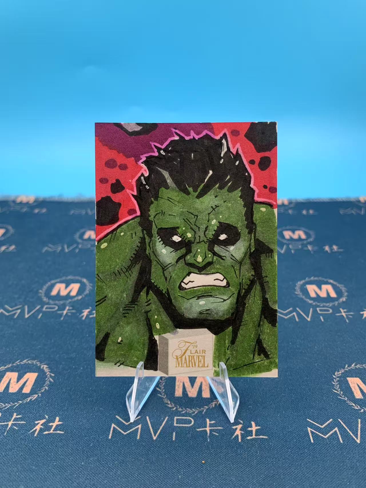 2019 Marvel (MCU) Fleer 漫威 Flair 天赋盒 手绘卡 Sketch 【MVP拍卖】 1/1编 ofo 绿巨人浩克 Hulk 画师 Andy 亲笔签名 值得收藏 菠萝
