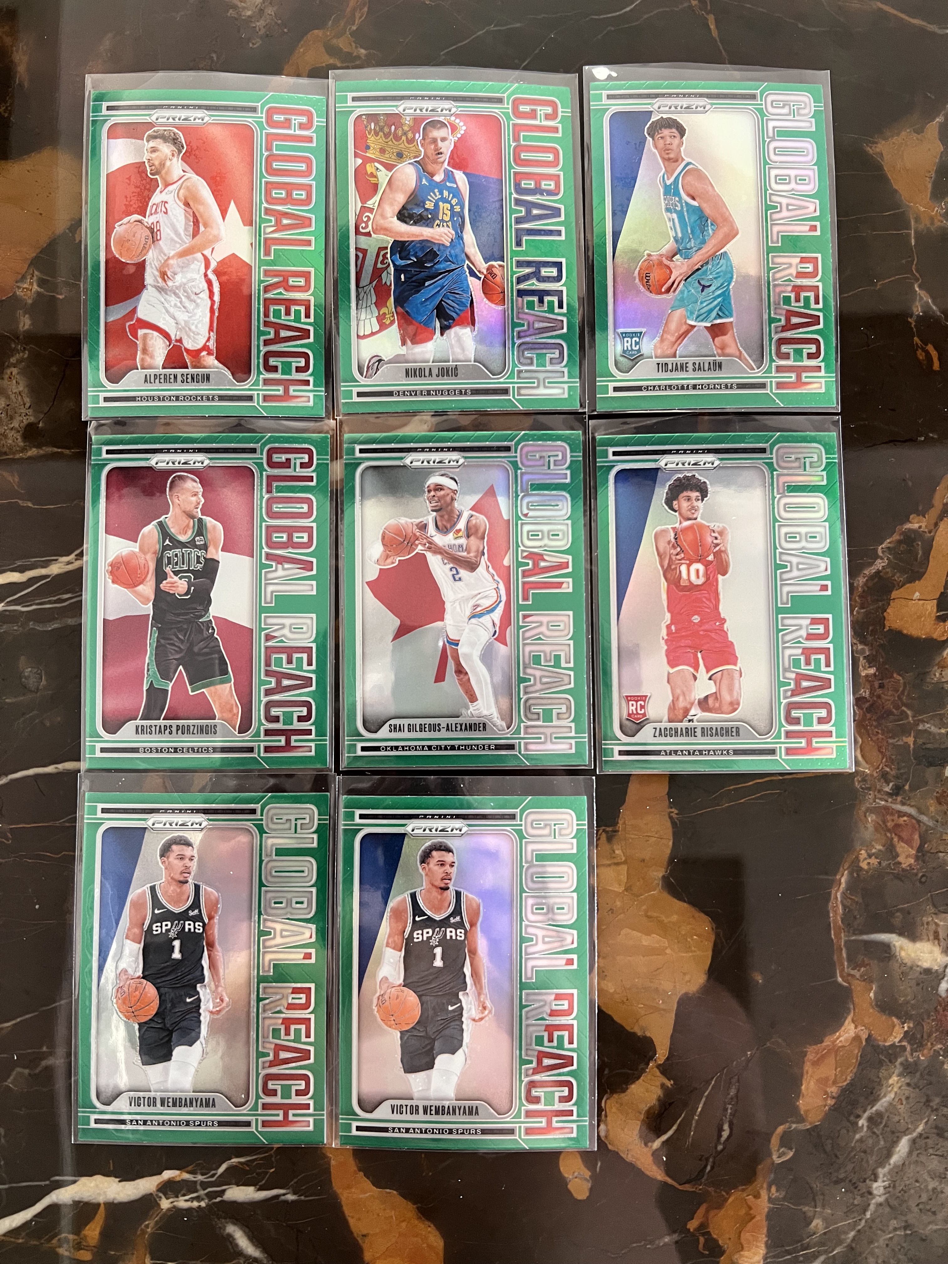 2024-25 panini prizm 8张 绿平行 global reach 折射卡 打包!!文班亚马、亚历山大、新秀里萨谢!!卡非常有质感!!凑套必备!!值得收藏!!