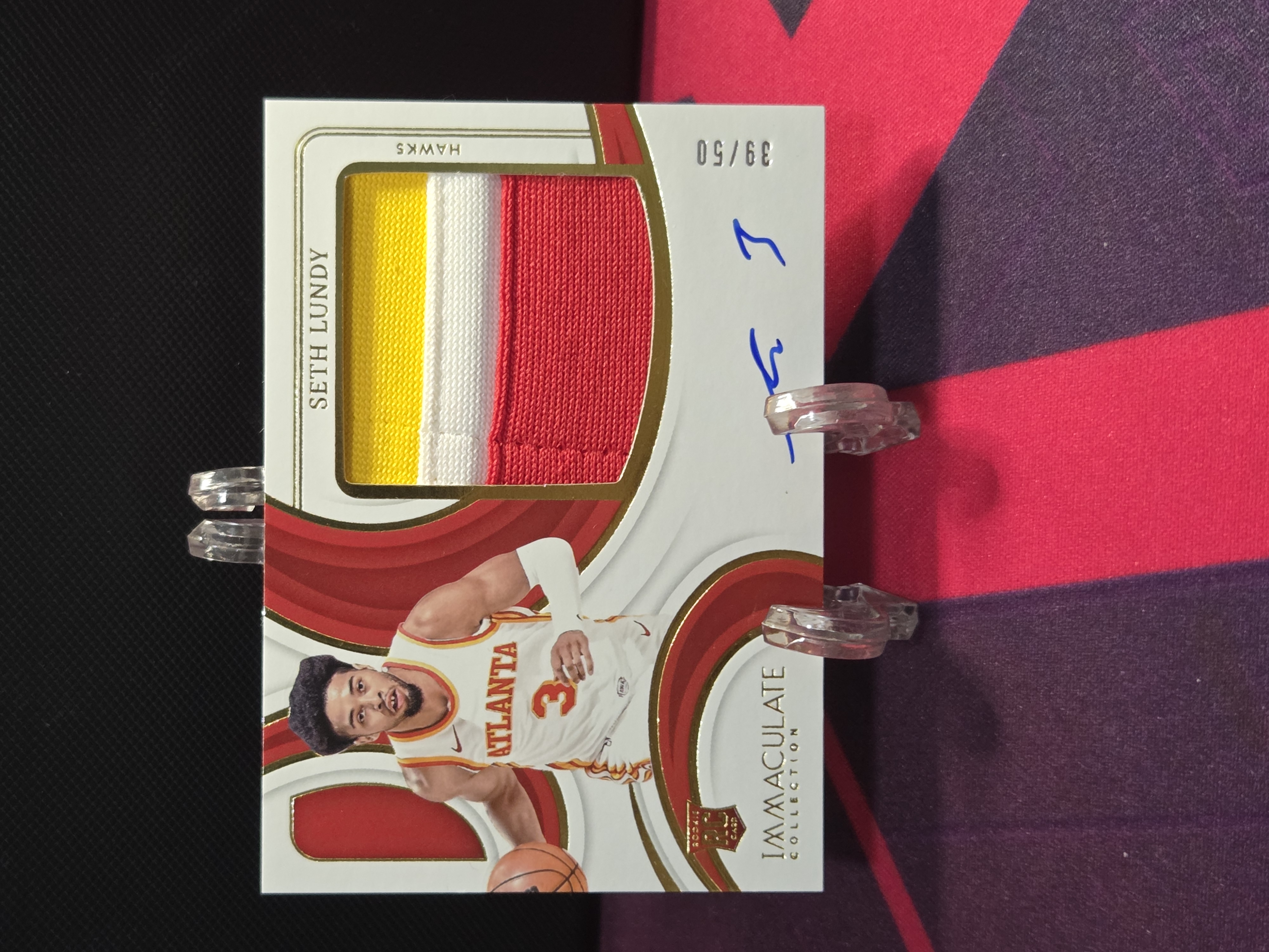 2023-24 Panini Immaculate Seth Lundy RC 【键宝代卖】塞斯 赛思 伦迪 老鹰新秀年爱咪咪卡签字 PPA 物料三色切割 39/50编 卡片如图 实卡好看