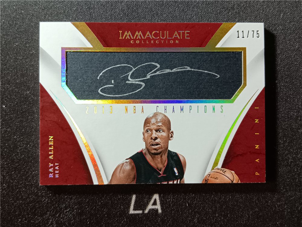 【LA拍卖】14-15 Panini Immaculate Ray Allen 雷阿伦 雷 阿伦 75大巨星 三分王 雄鹿队名宿 热火 NBA Champions 总冠军 小黑板 银笔签 卡签签字 /75编 边角白如图 V57A