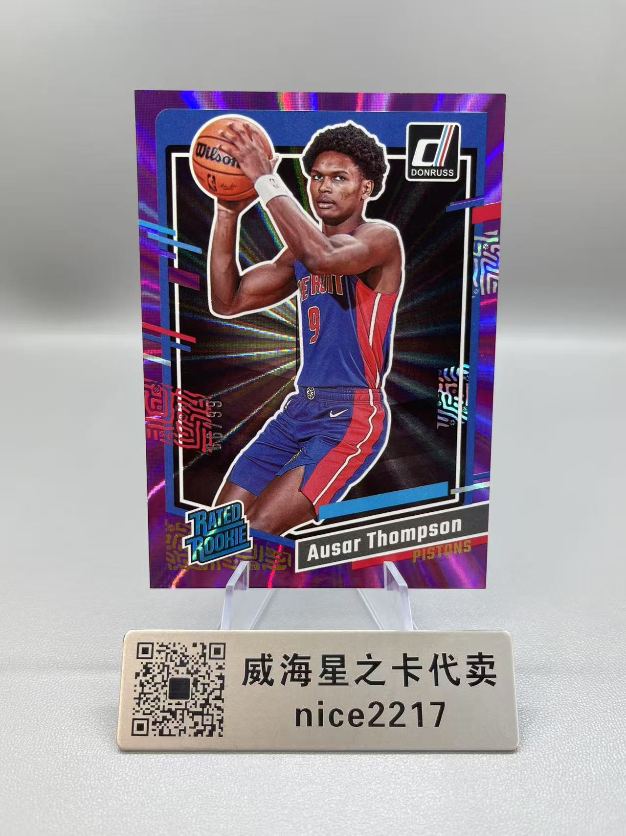 2023-24 Panini Donruss Ausar Thompson RC 【威海星之卡】活塞 奥萨尔汤普森 杜蕾斯 66/99编 新秀 紫佛光折 紫射线折 紫折射 瑕疵看图O派13