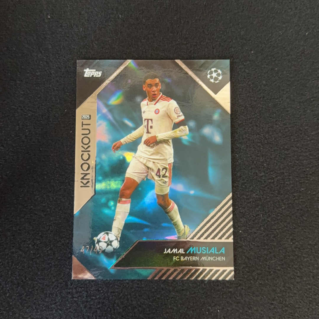 2025 Topps Knockout Jamal Musiala 欧冠淘汰盒 小黑盒 穆夏拉 拜仁慕尼黑 德国 49编 蓝折 特卡 卡品如图 细节如图