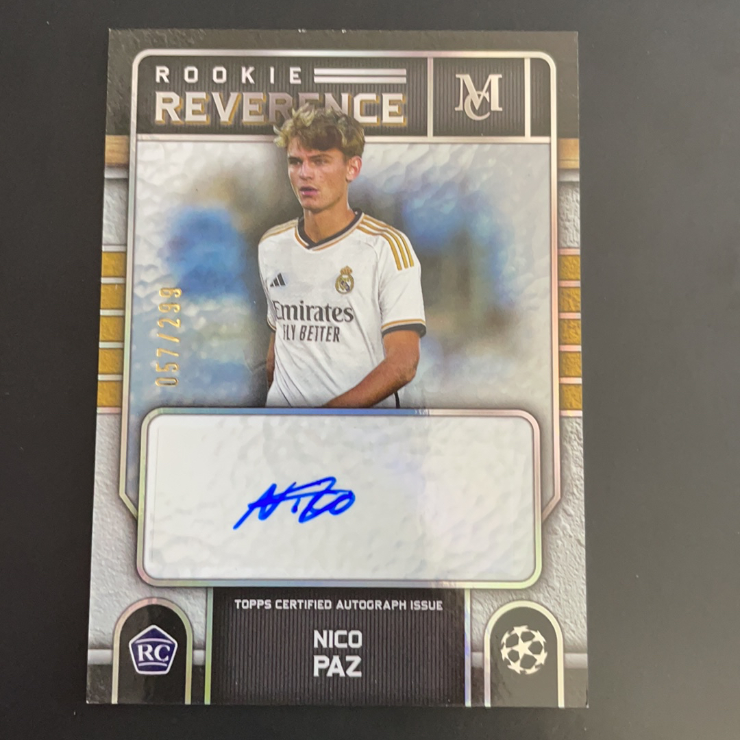 2024 Topps 博物馆 nico paz 欧冠 博物馆 皇马 尼克 帕斯 新秀 签字 银平行 57/299编 收藏必备 卡品如图 马内