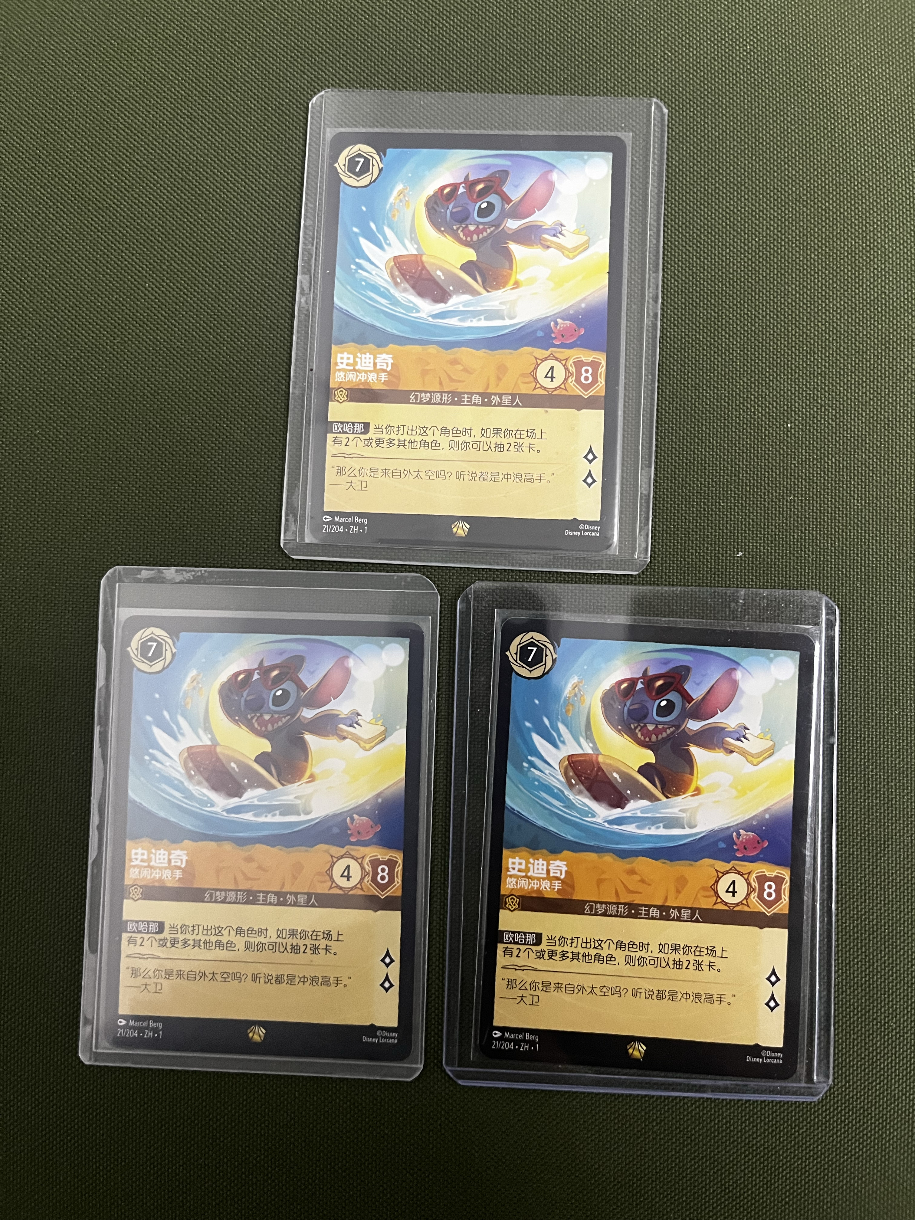 2025 LORCANA 泼墨第一章 迪士尼 chs 洛卡纳 史迪奇 - 悠闲冲浪手 21/204·ZH·1 L 简中 三张