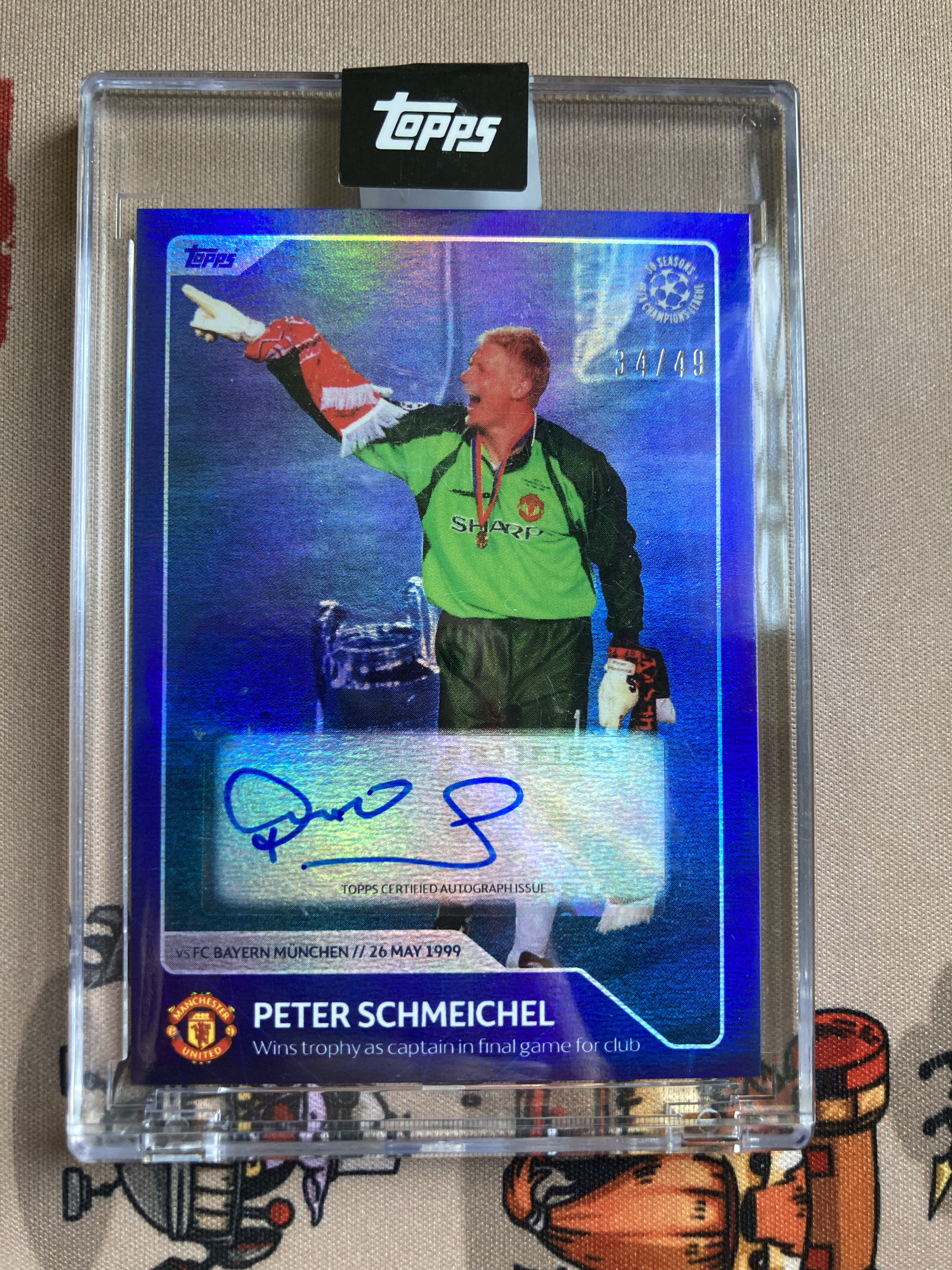 2022 Topps UCL 欧冠30周年 Peter Schmeichel 舒梅切尔 曼联 丹麦 传奇门将 贴签 34/49编 欧冠决赛对阵拜仁选图 原封砖 收藏必备